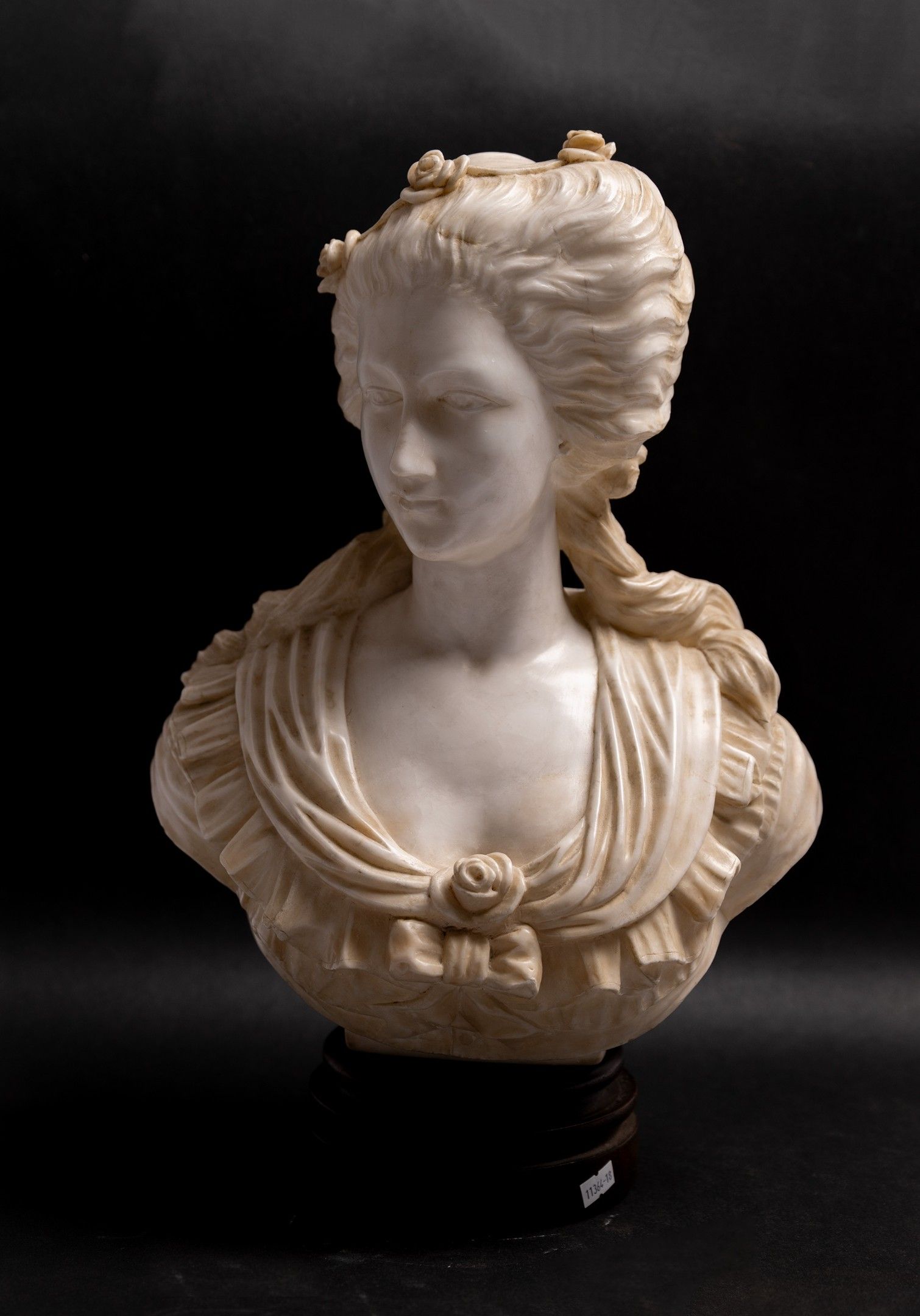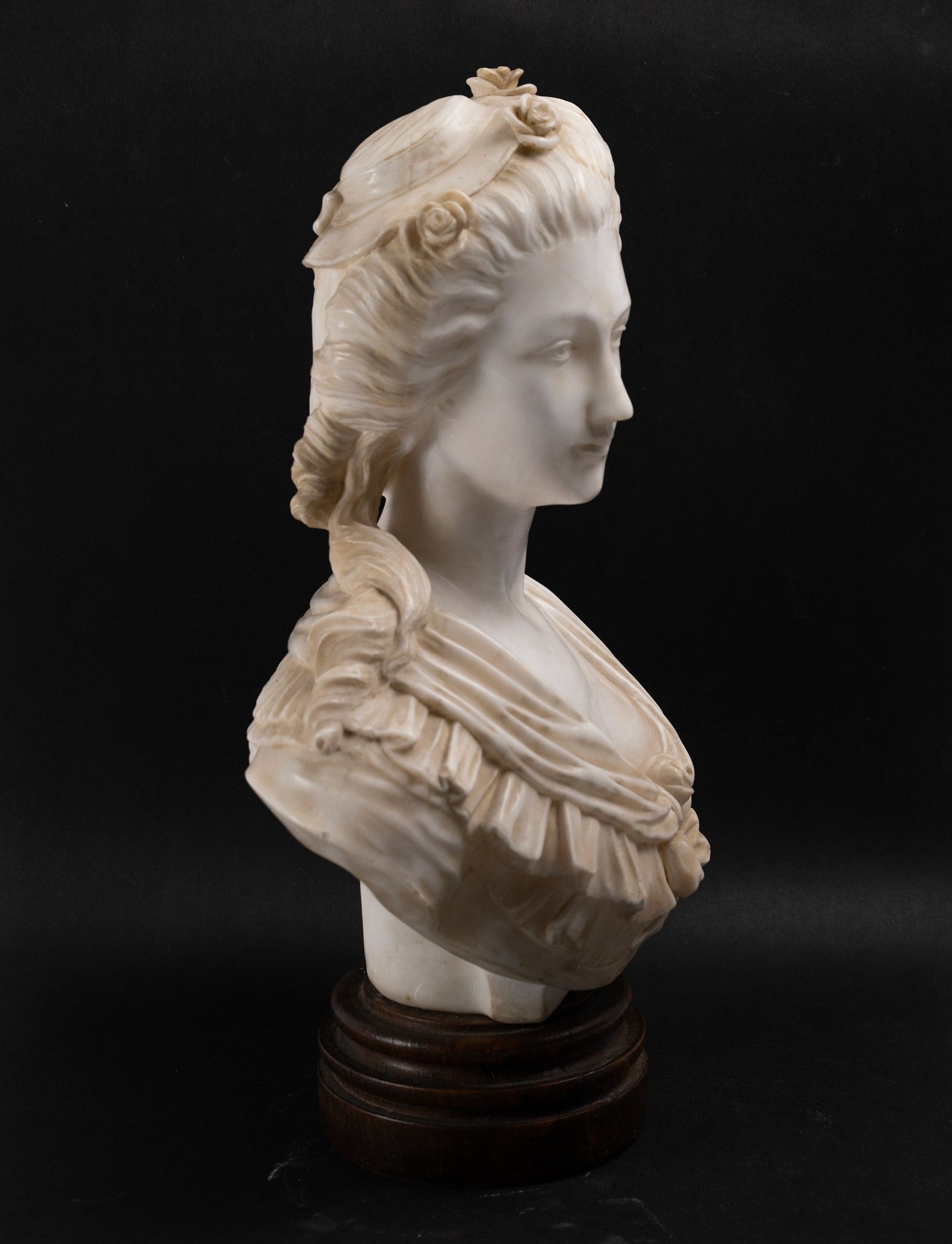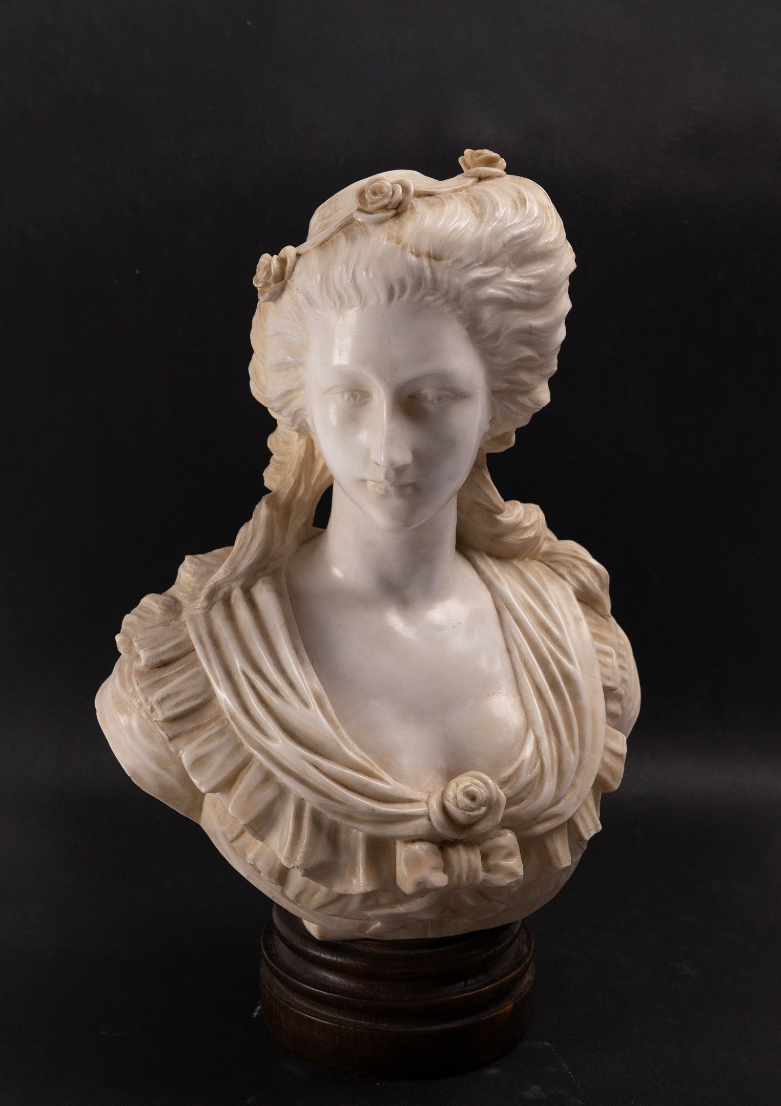 Auguste PAJOU (1730-1809), after, Portrait de la Comtesse du Barry, alabaster signed on the back, H: 47 cm