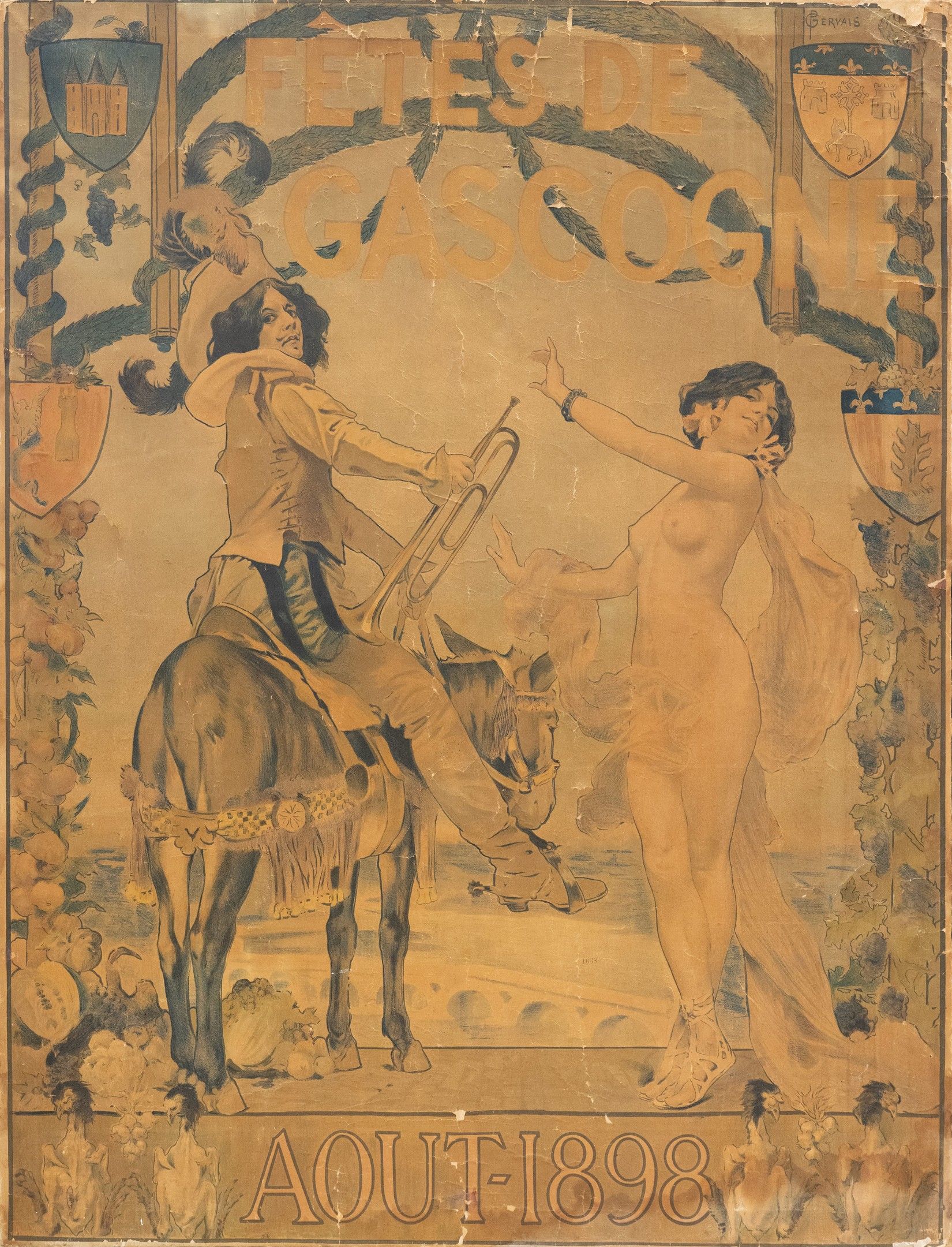 Paul Jean GERVAIS (1859-1944), Fête de la Gascogne 1898, canvas poster, H: 132 cm, W: 101 cm, accident