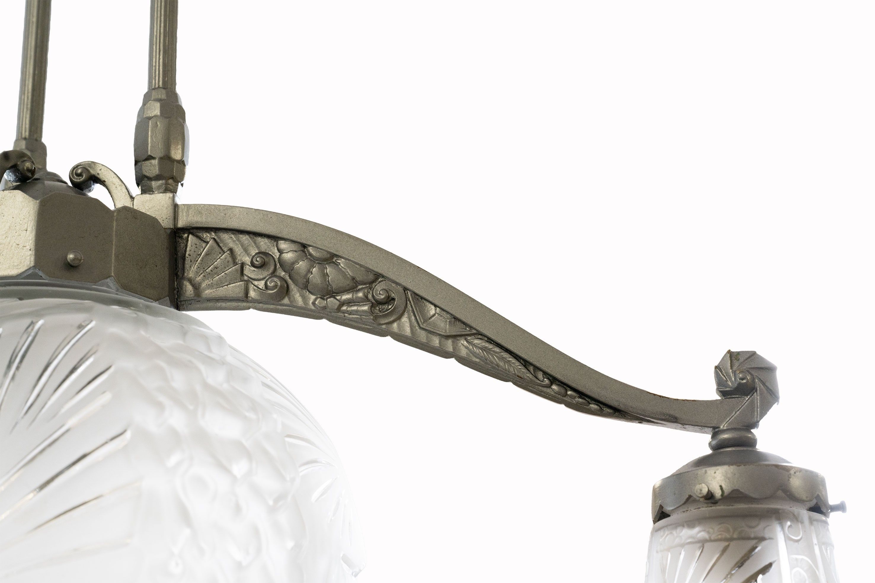 MULLER FRÈRES - LUNÉVILLE Hanging lamp in silver-plated meta…