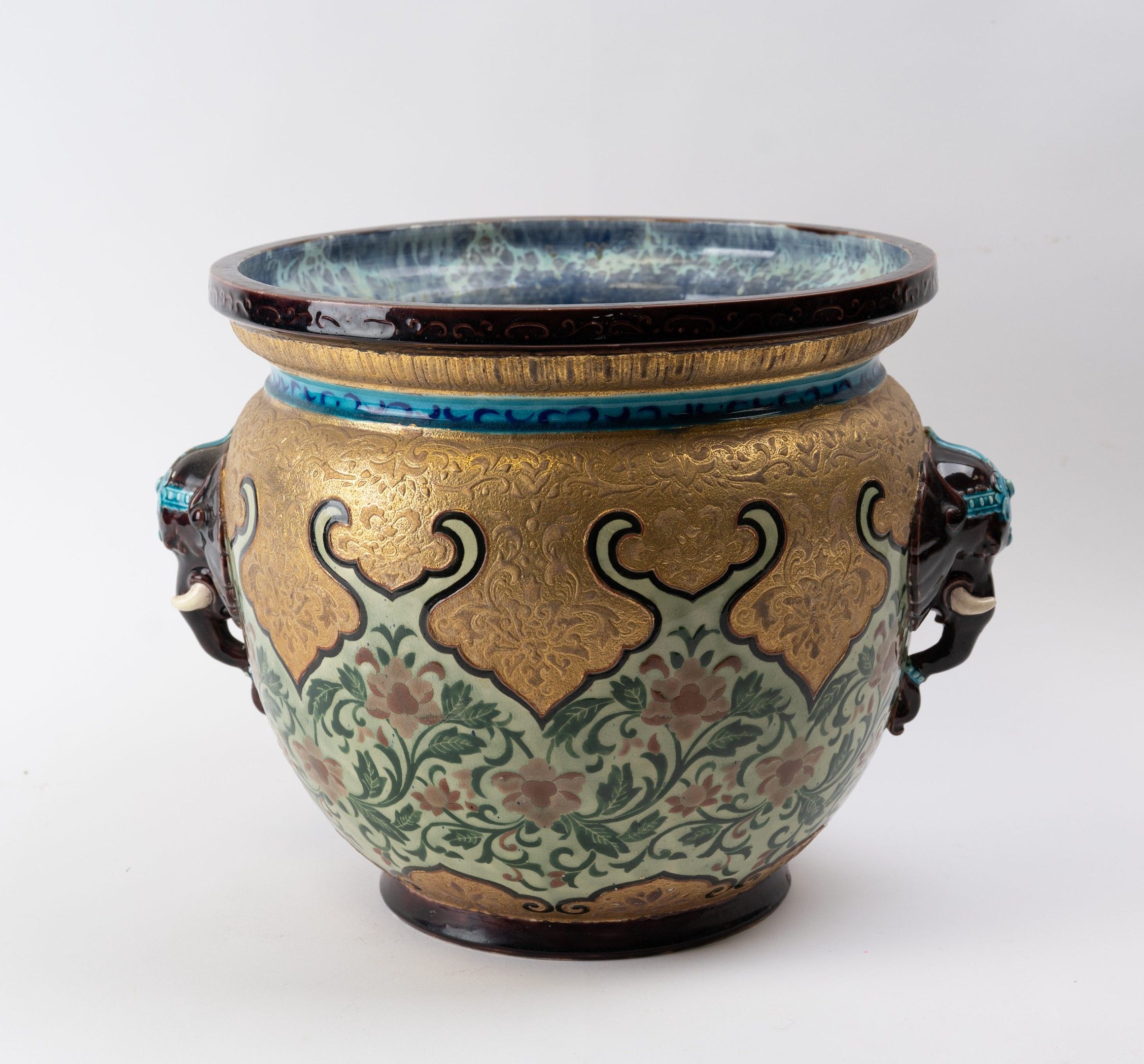 Earthenware proof with polychrome enamelled decoration on a gilded background