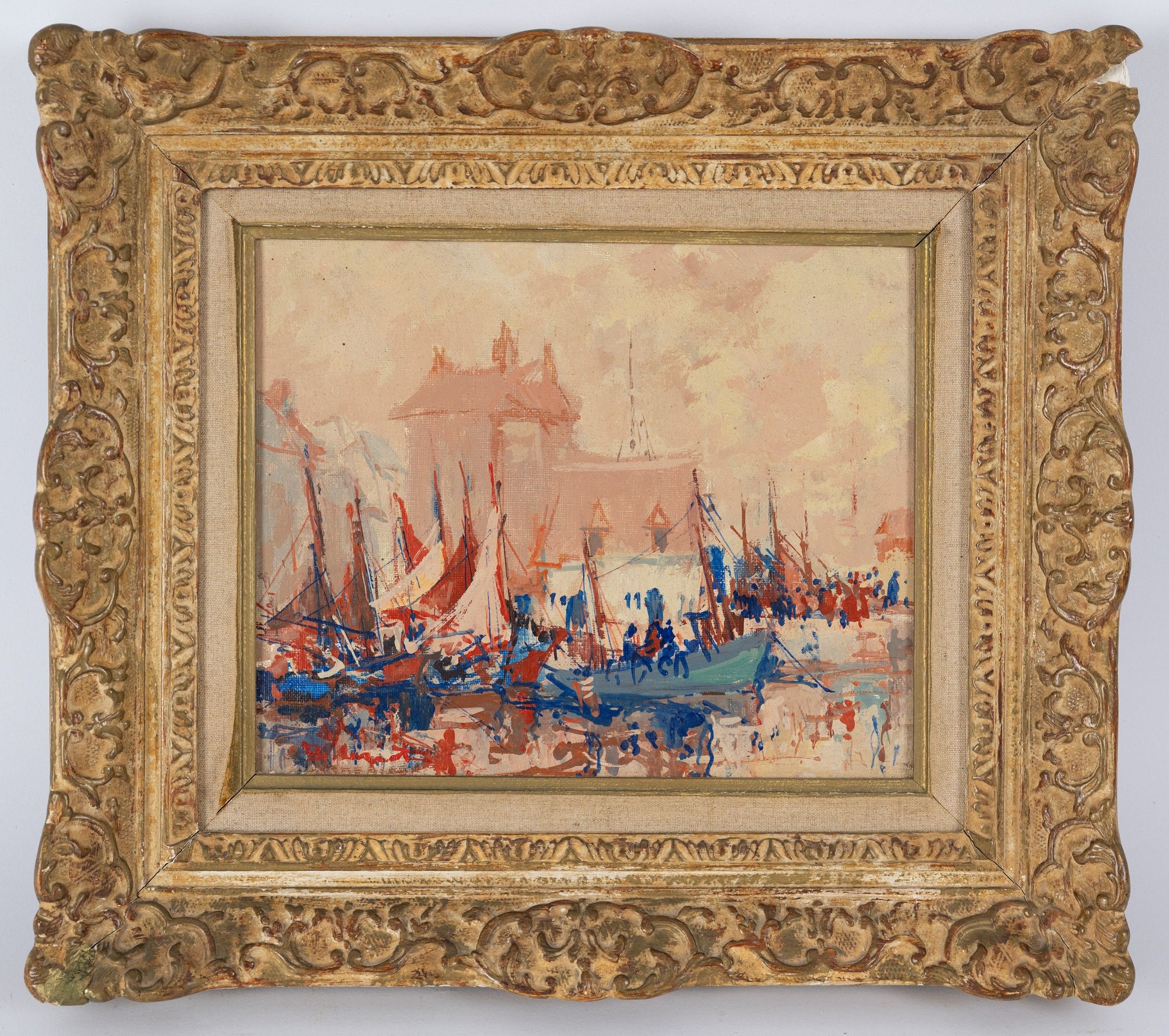 Bernard LORIOT (1925-1998), "Port animé", oil on canvas signed lower left, H: 22 cm, W: 27 cm