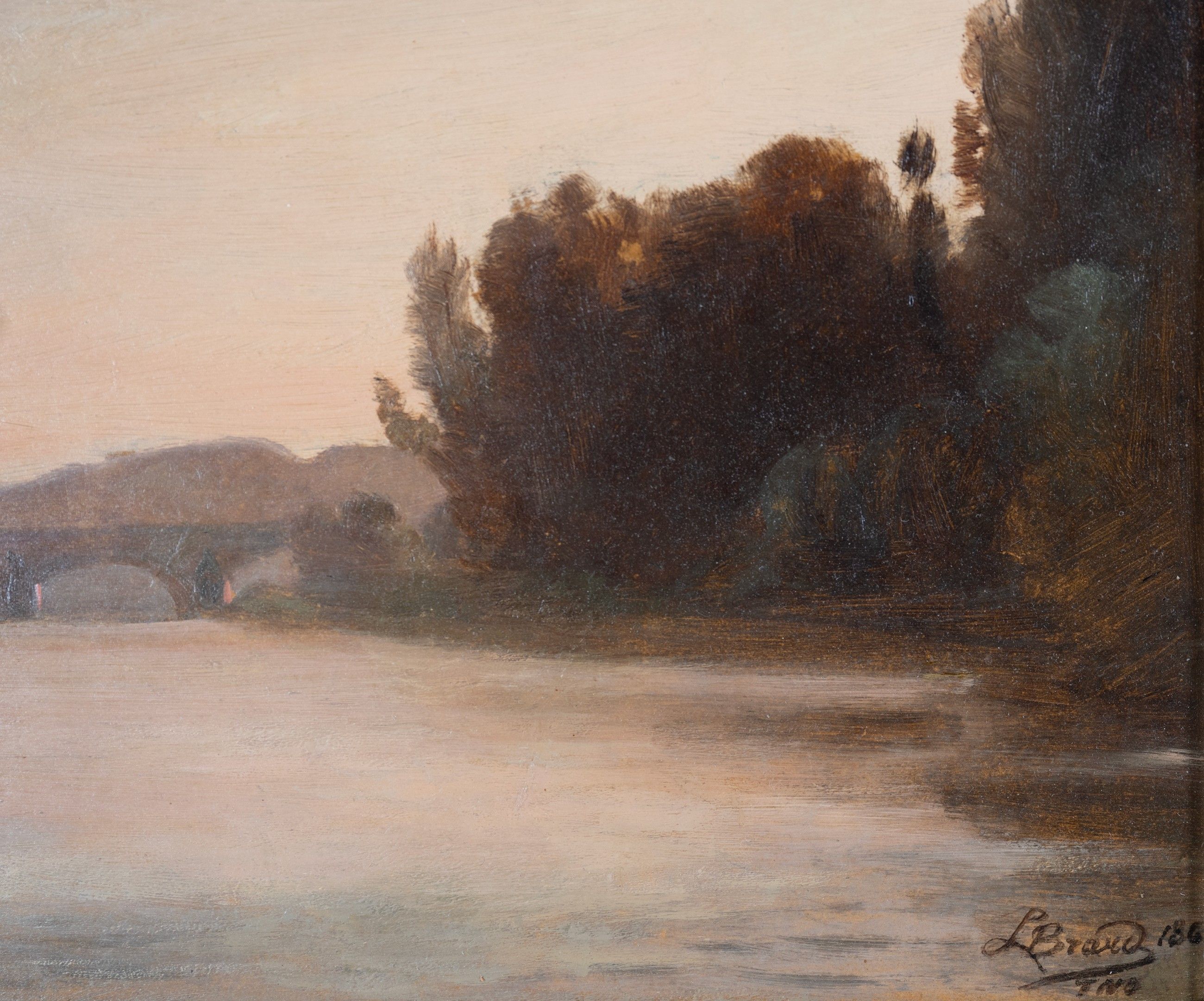 L. BRAUD (XIX-XX), "Paysage au pècheur", oil on canvas signed and dated 86 lower right, H: 25.5 cm, W: 35.5 cm