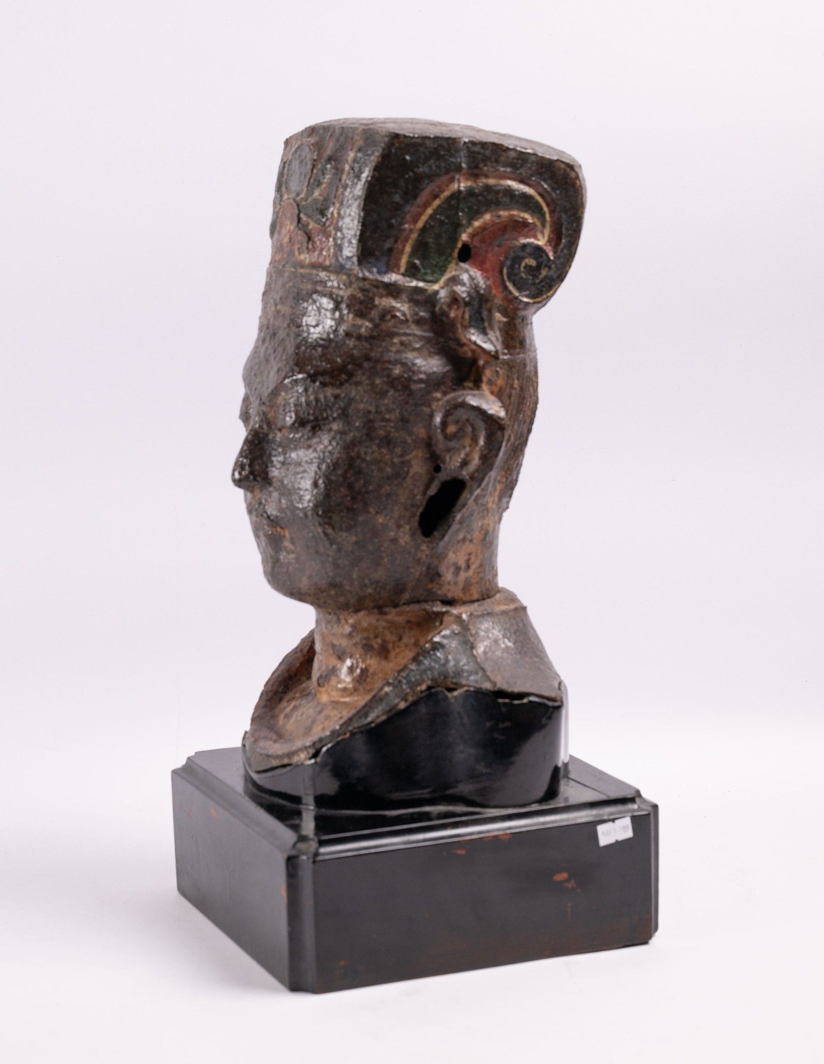 CHINA 19th c., Polychrome cast iron head, H: 48 cm, W: 24 cm, on base