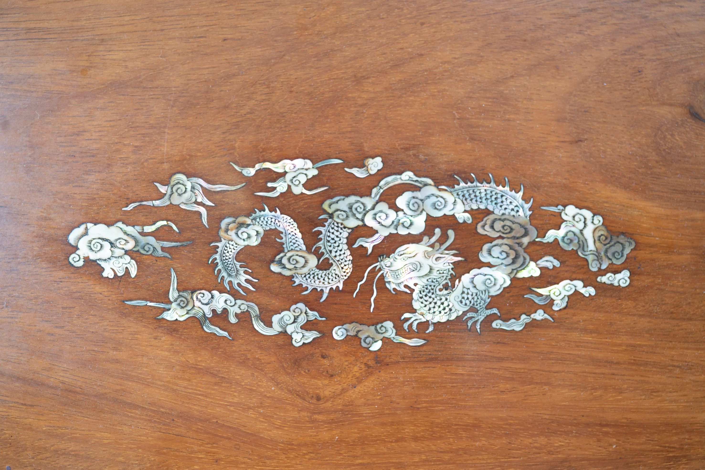 VIETNAM, Oval ironwood tray with mother-of-pearl marquetry d…