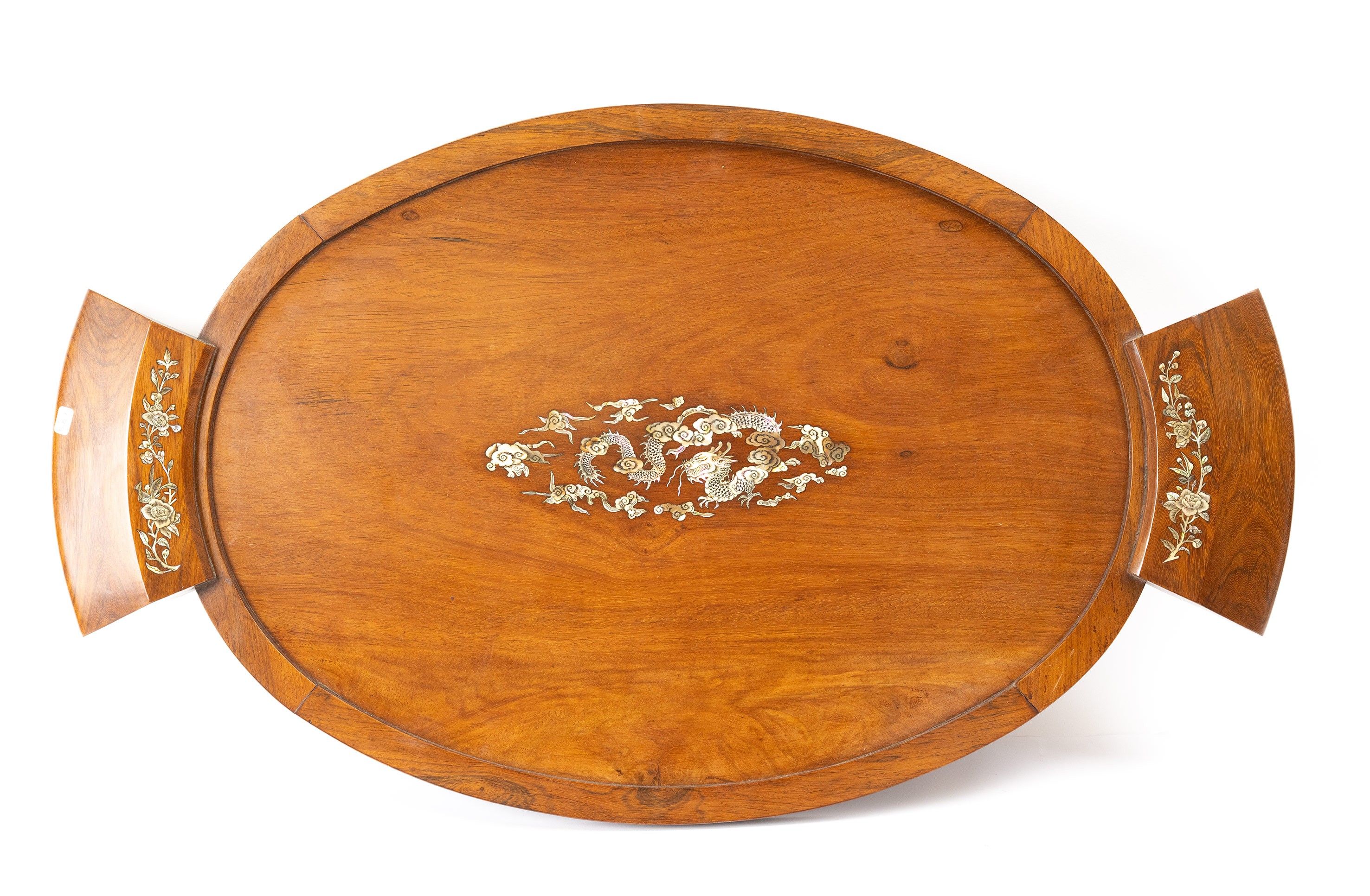 VIETNAM, Oval ironwood tray with mother-of-pearl marquetry decoration, L: 84 cm, W: 48 cm