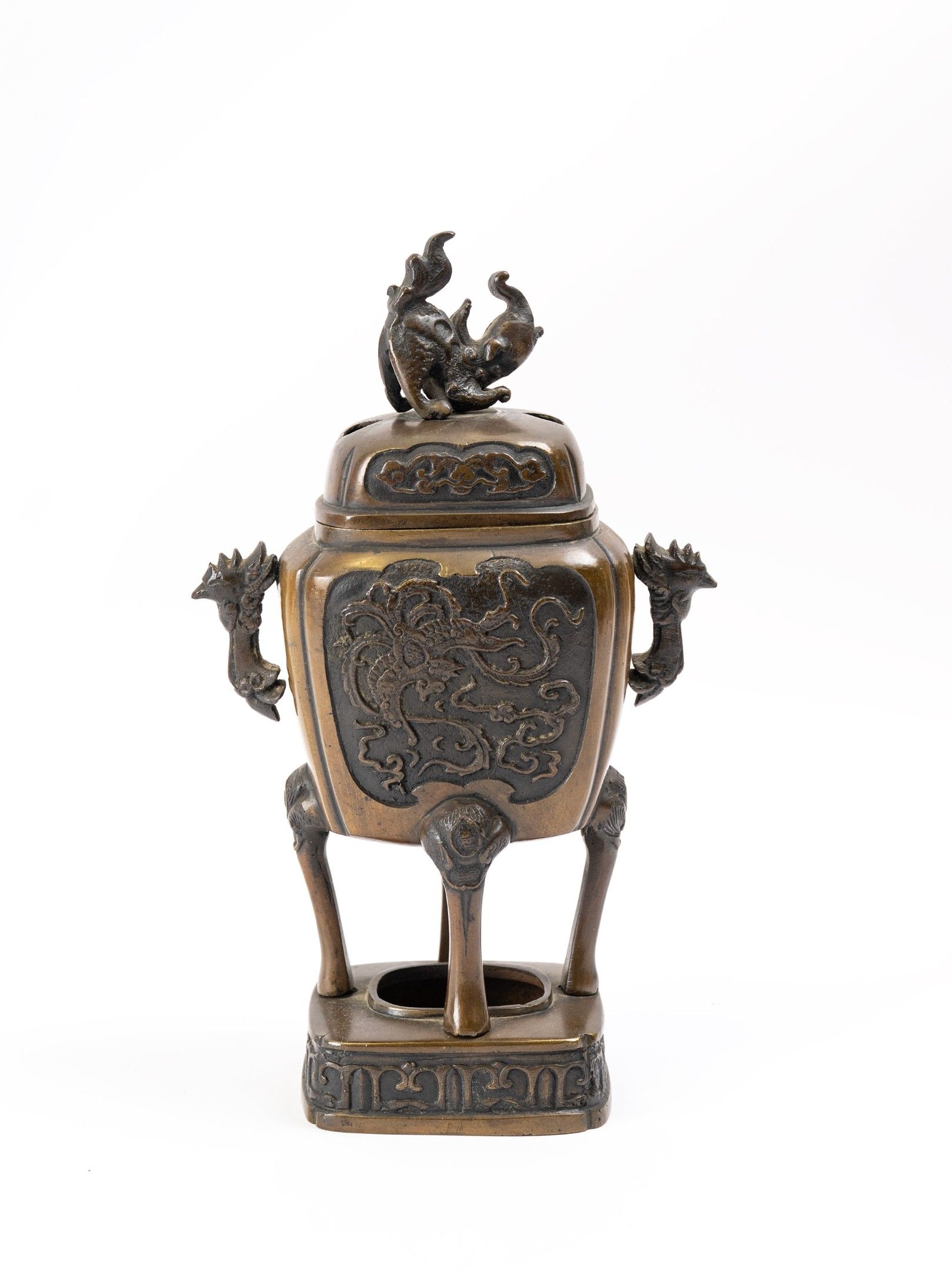 19th century China, perfume burner in patinated bronze, H: 22 cm