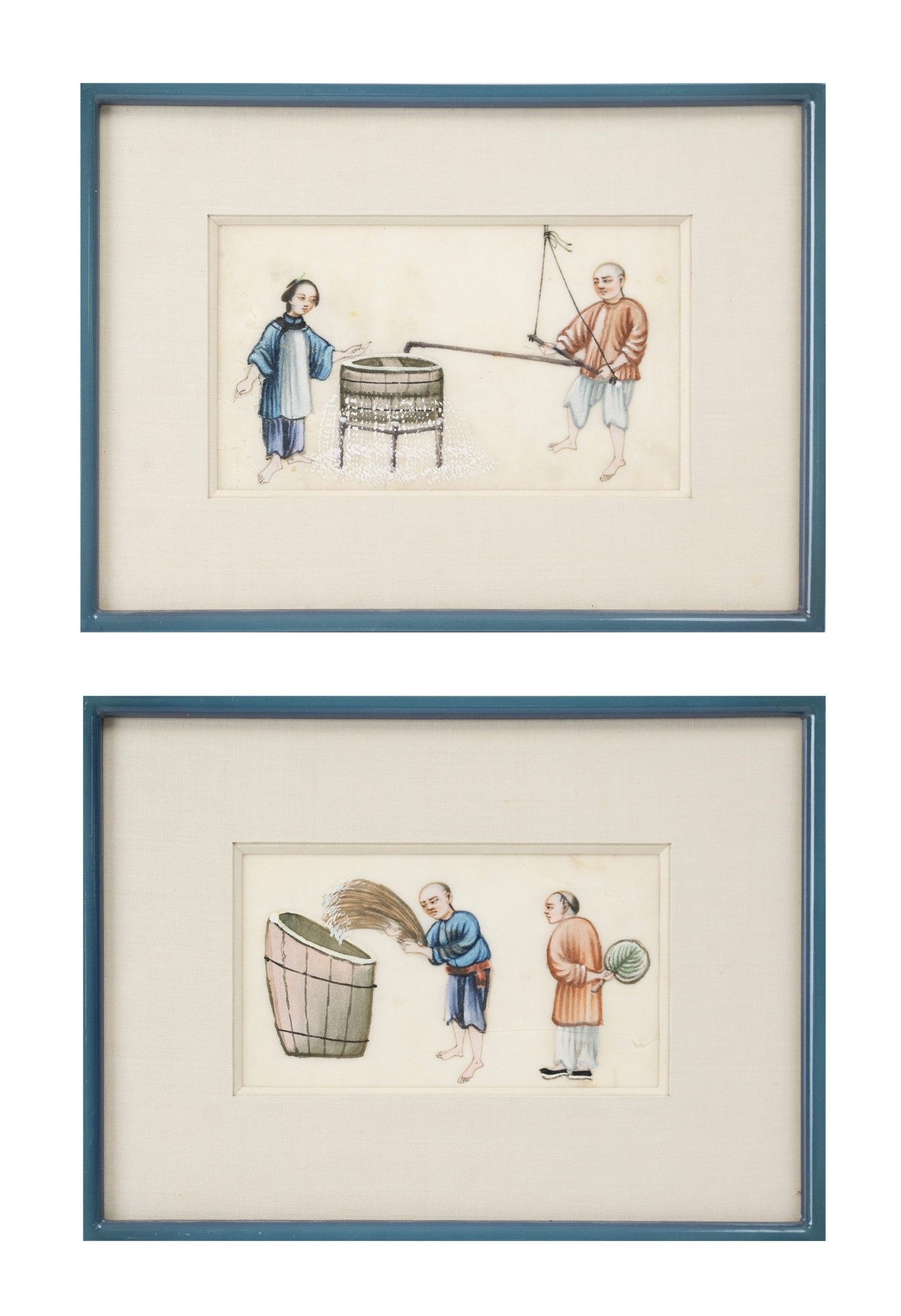 China, early 20th century, two scenes of life, painted on rice paper, H: 9 cm, W: 13 cm