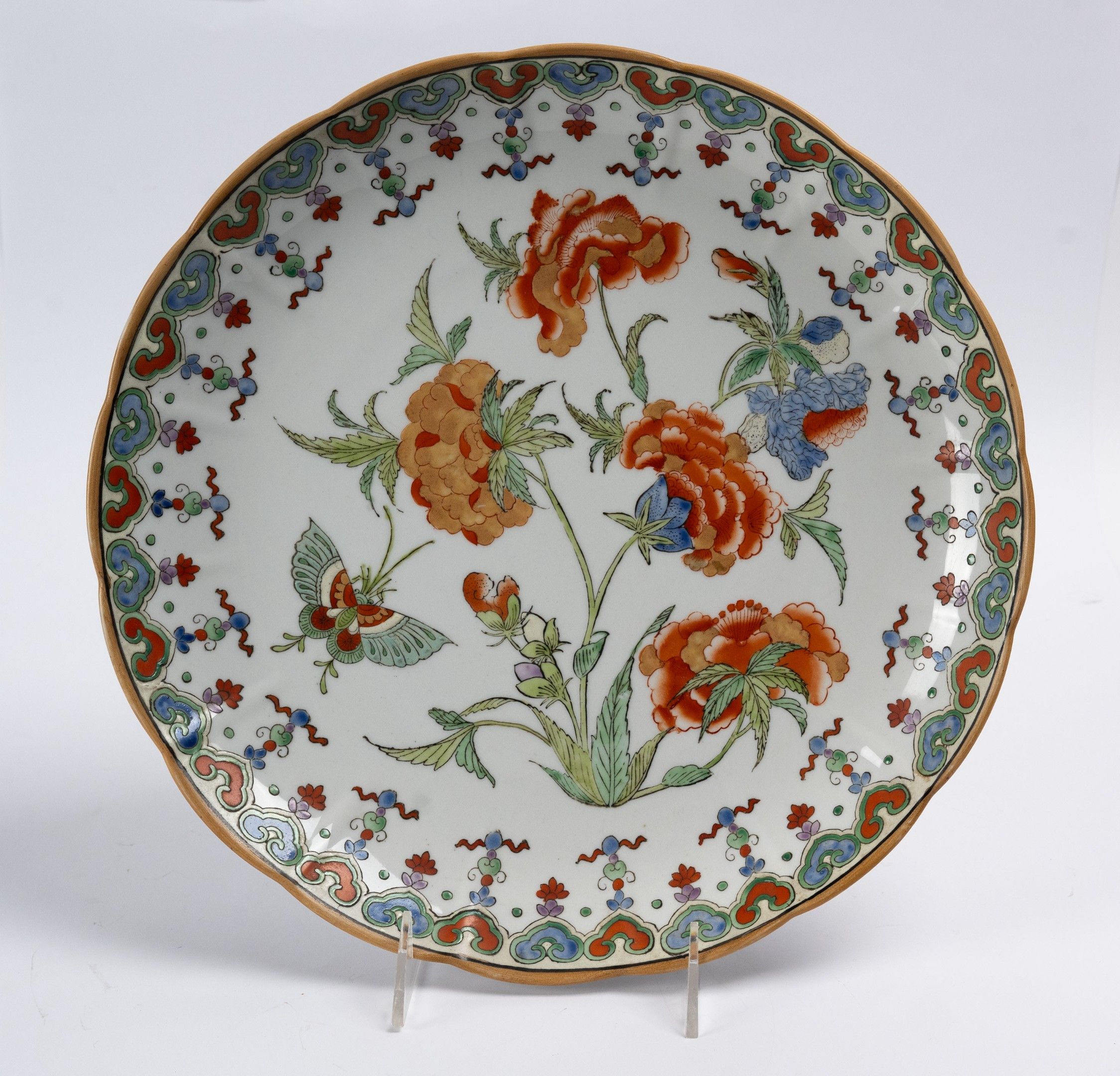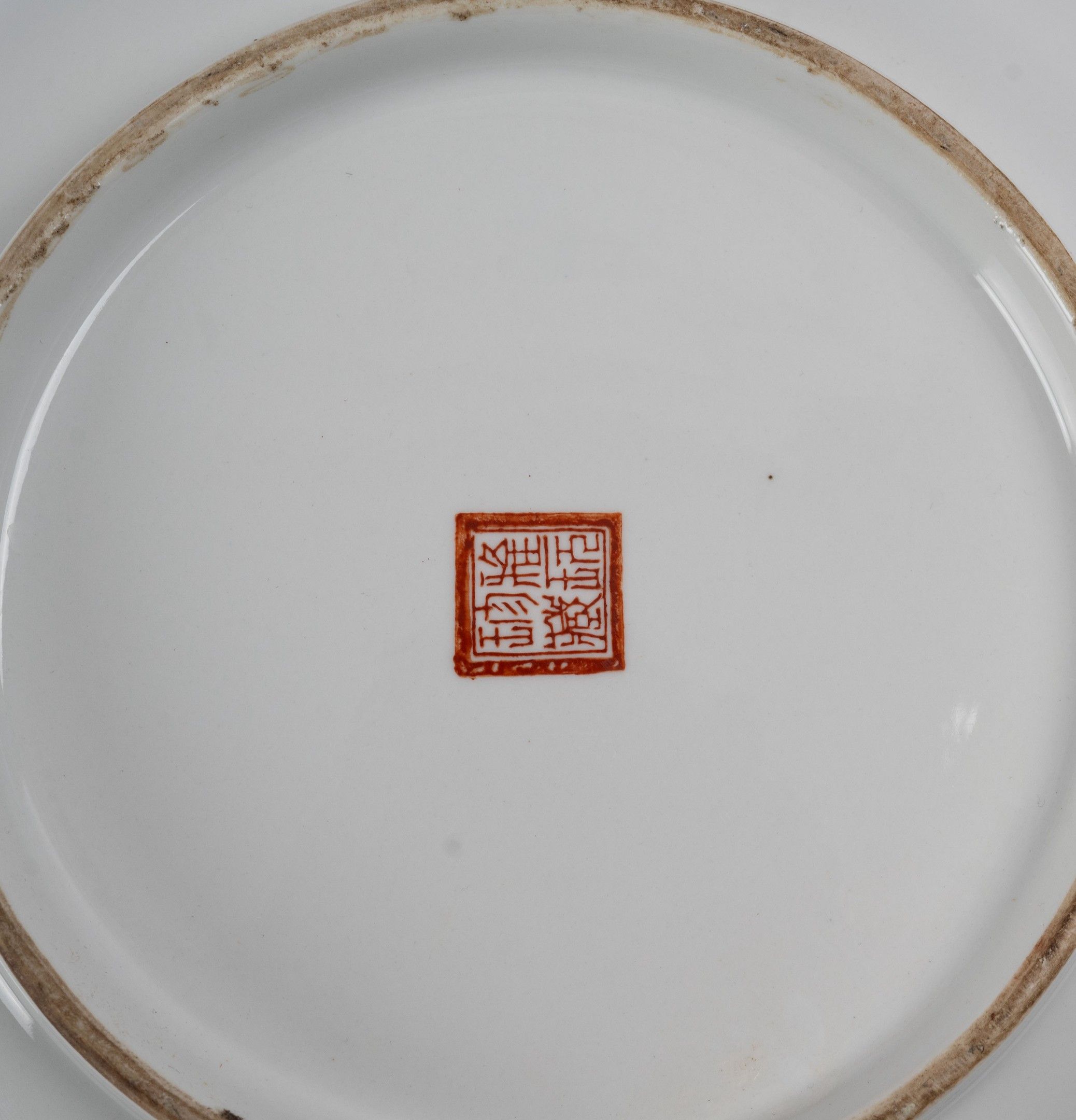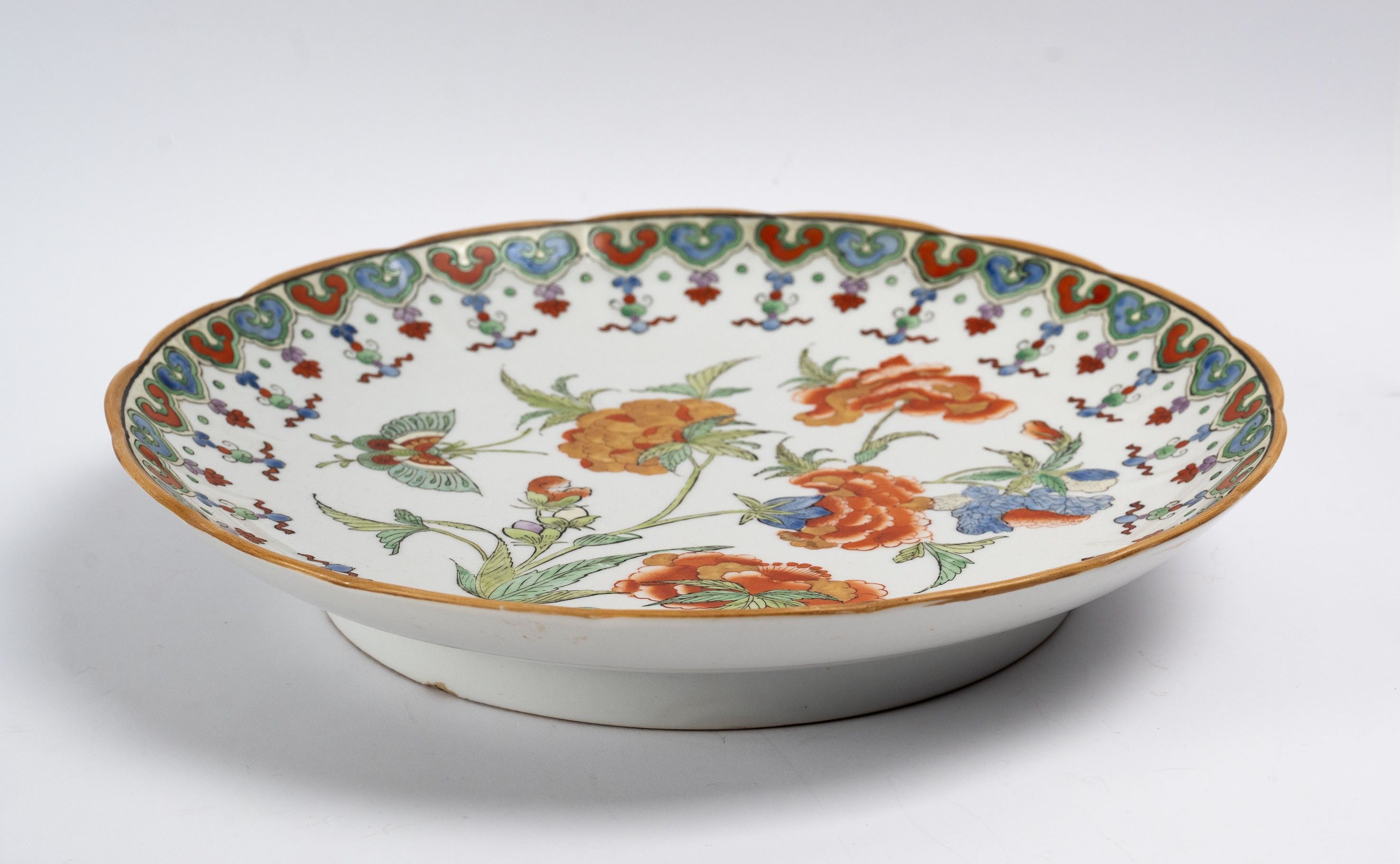 CHINA 20th century, Porcelain Pat decorated with polychrome carnations, imperial mark below, D: 31 cm