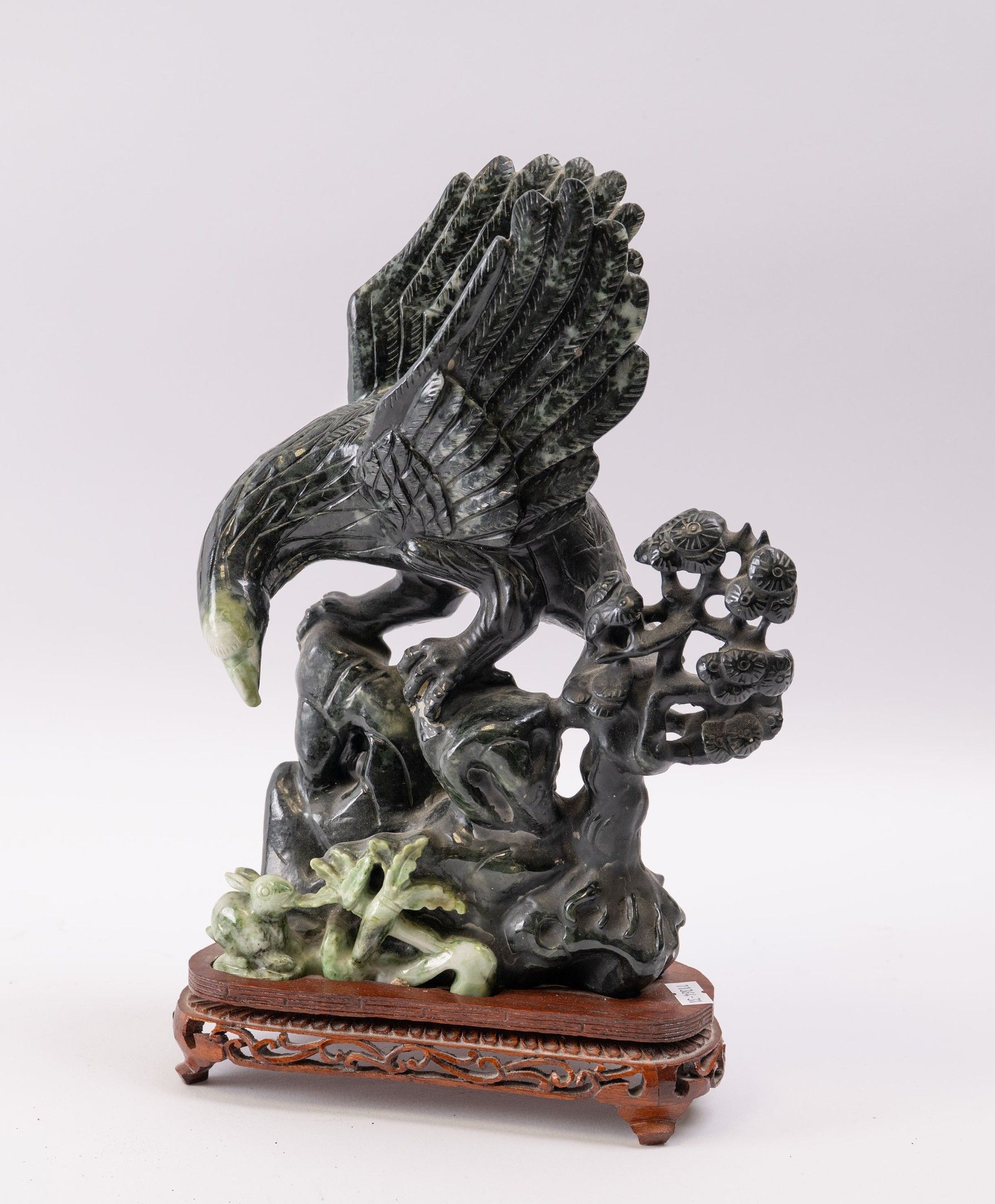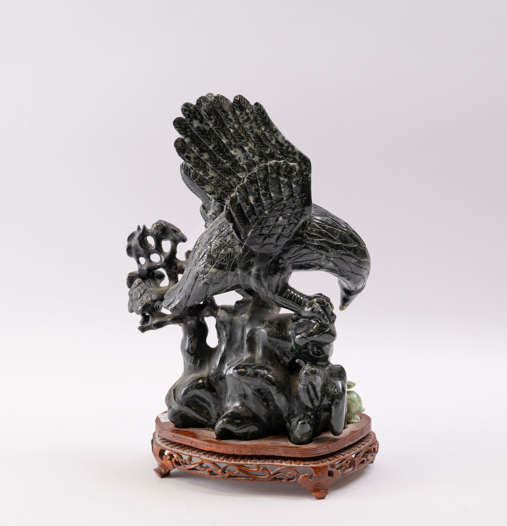 A jadeite group depicting an eagle on a rock, H: 30 cm,