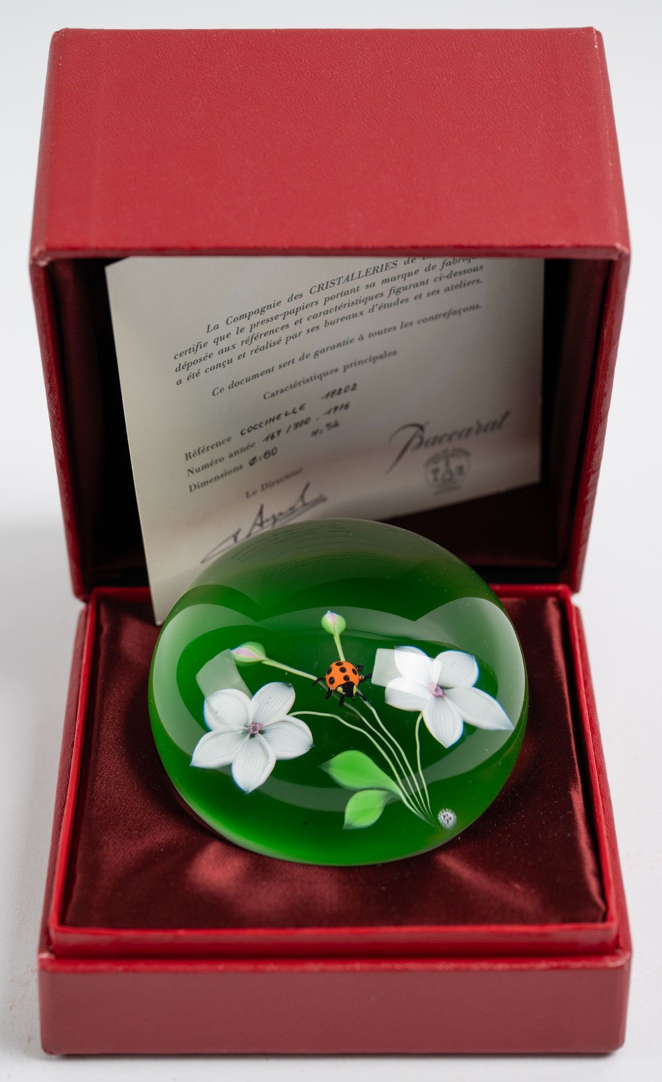 BACCARAT, crystal paperweight, Ladybird on white flowers, 19…
