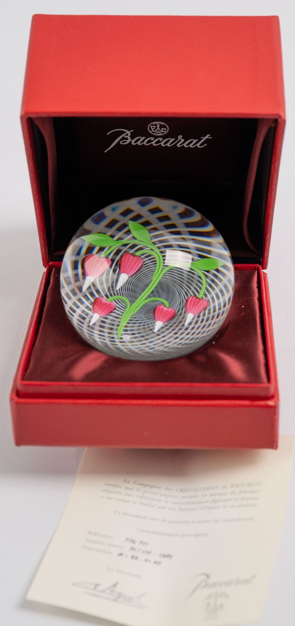 BACCARAT, crystal paperweight, Cœurs de Marie, 1984, ref: 774 711, justified 91/175, D: 82 mm, H: 63 mm, in box with certificate