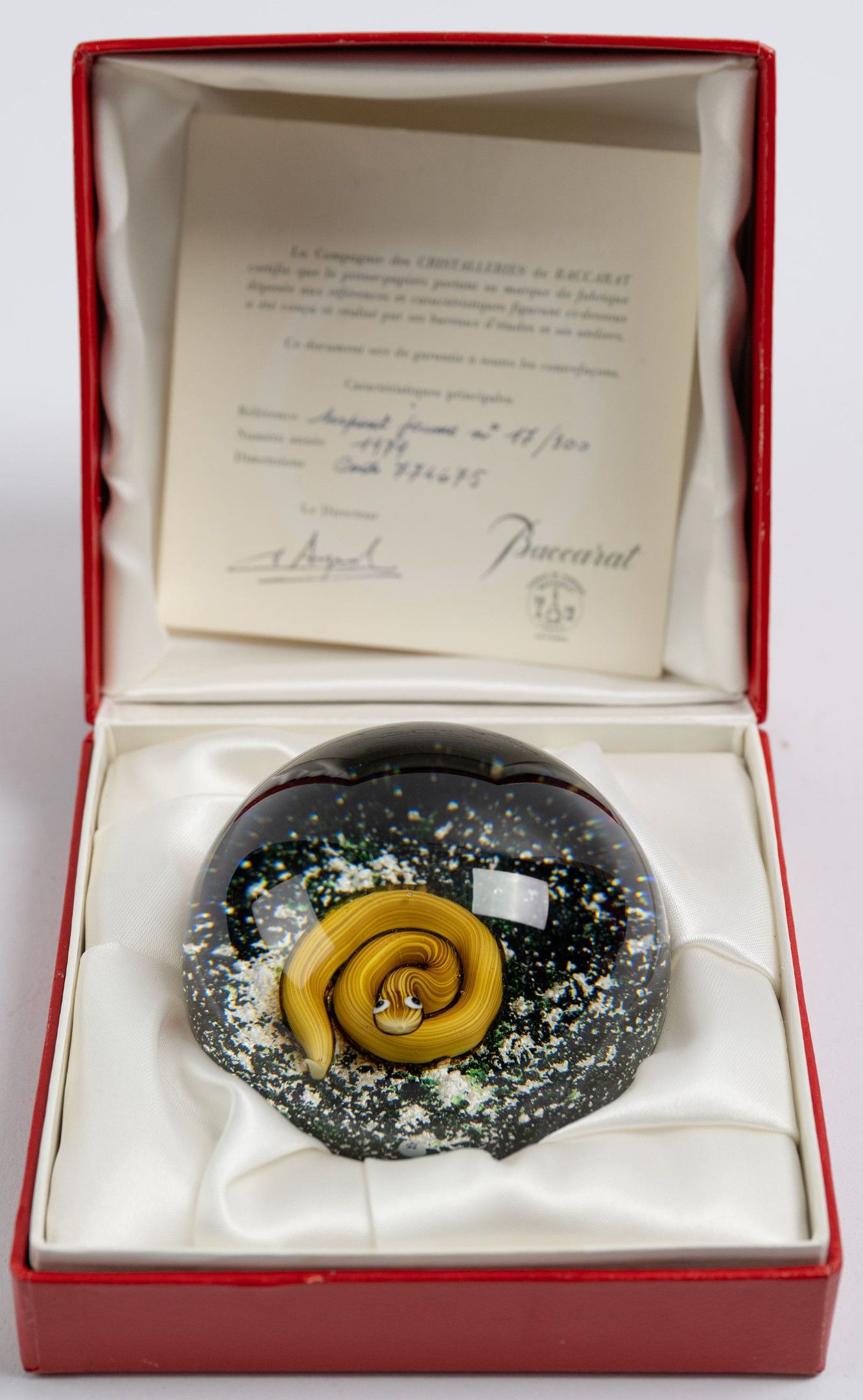BACCARAT, crystal paperweight, Serpent jaune, 1979, ref : 774 675, justified 17/300, in its box with certificate
