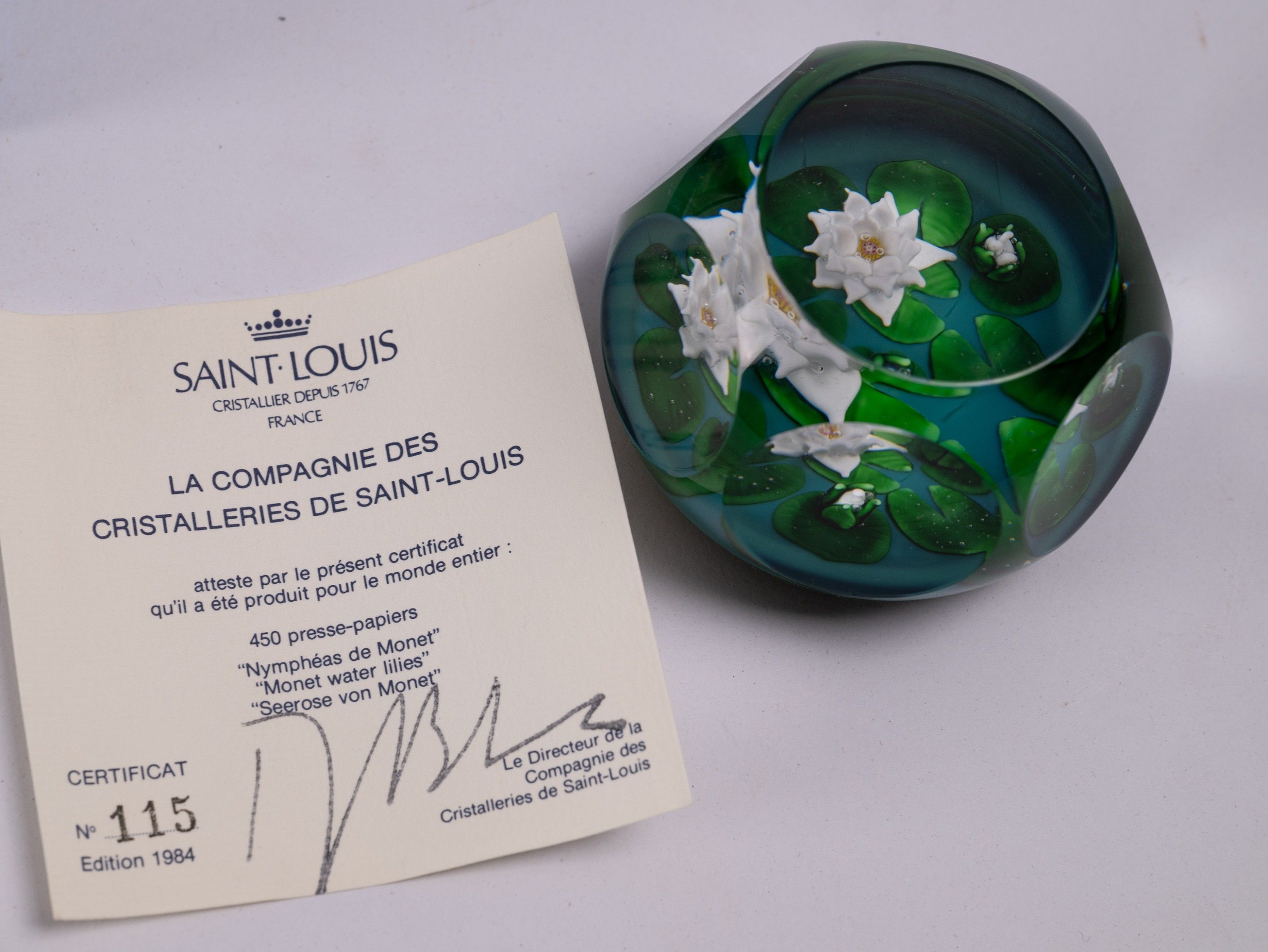 SAINT LOUIS, Les Nymphéas, after Claude Monet, paper-pressed ball in crystal and sulphur, in its box and with its certificate of authenticity 115/450