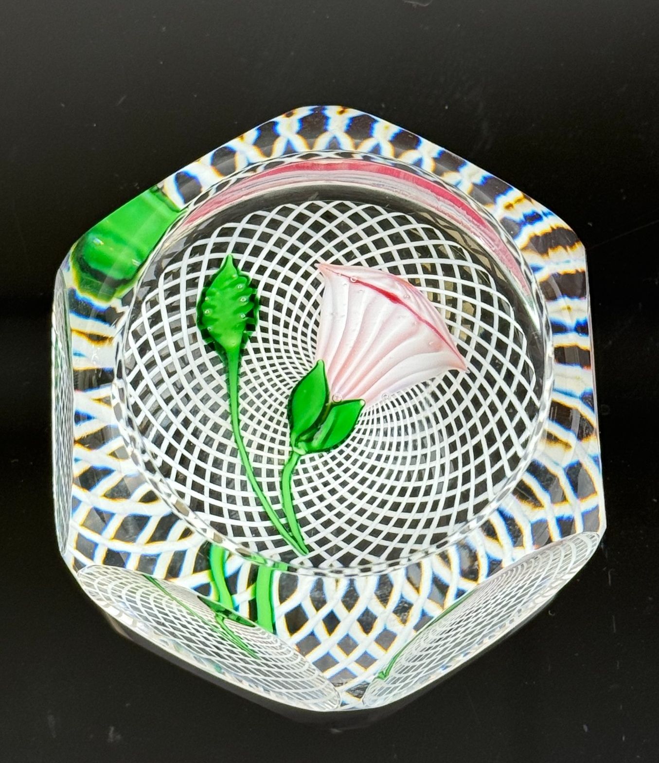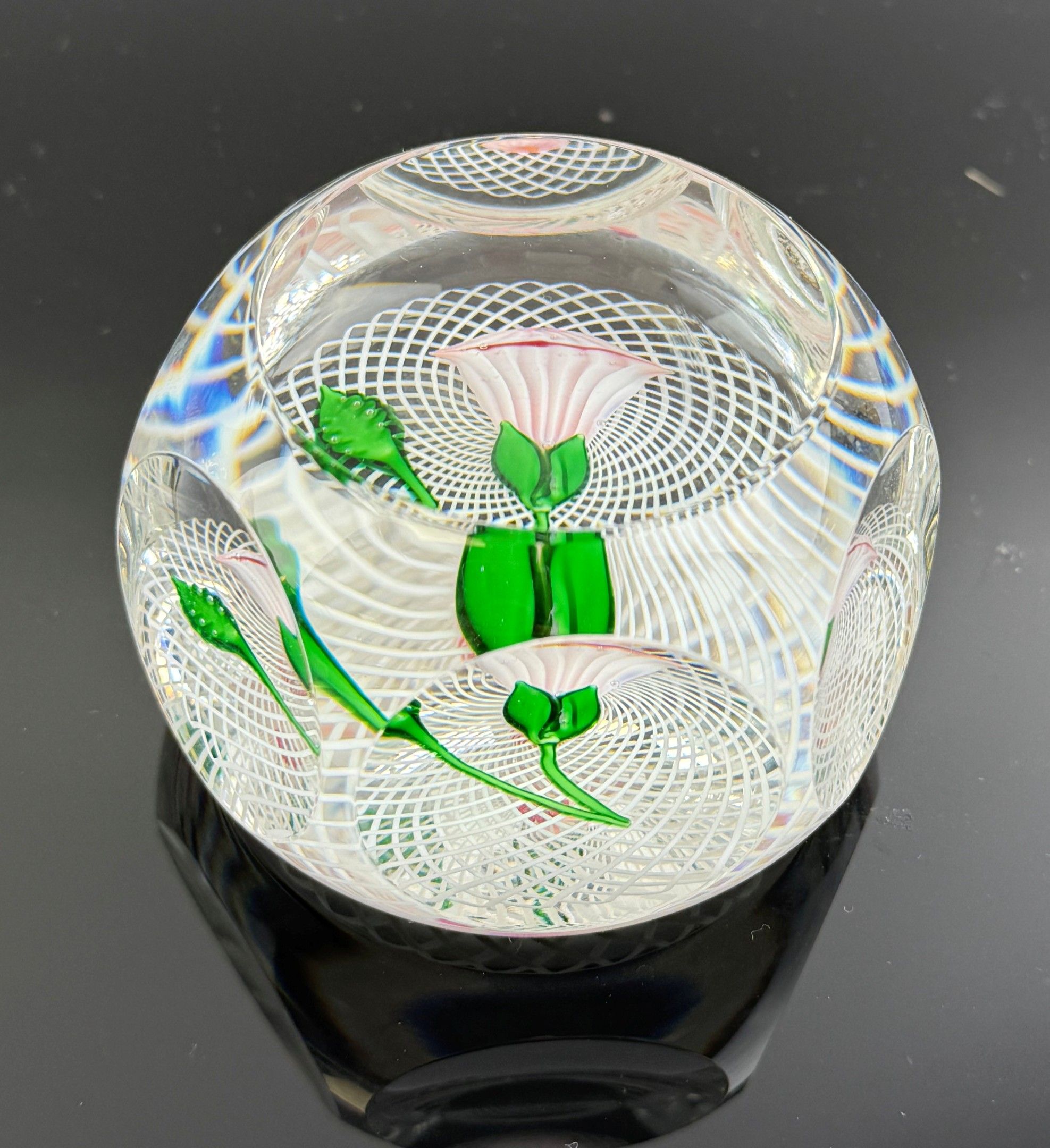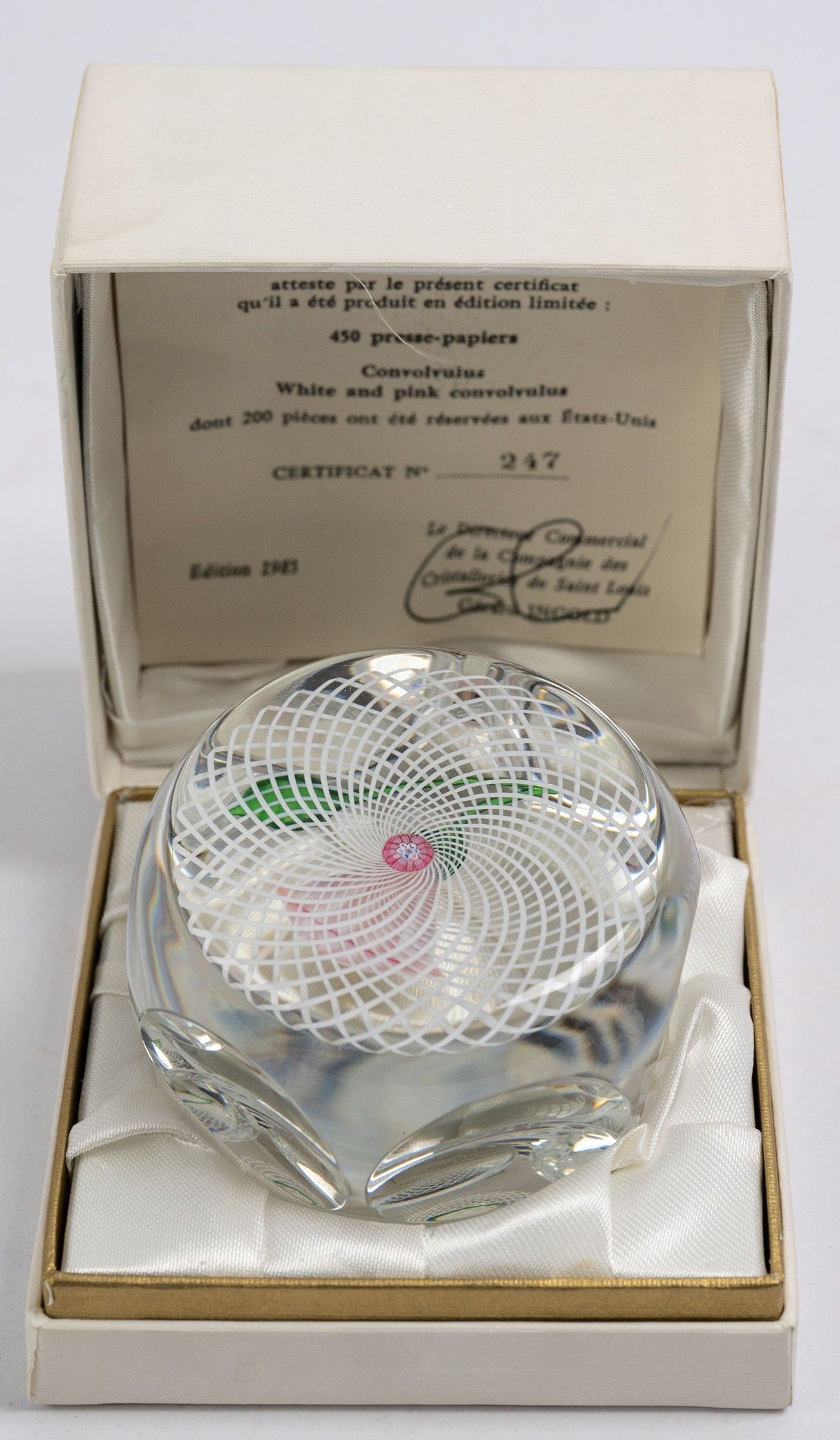 SAINT LOUIS, crystal paperweight, Convolvulus white and pink, 1983, justified 247/450, in box with certificate
