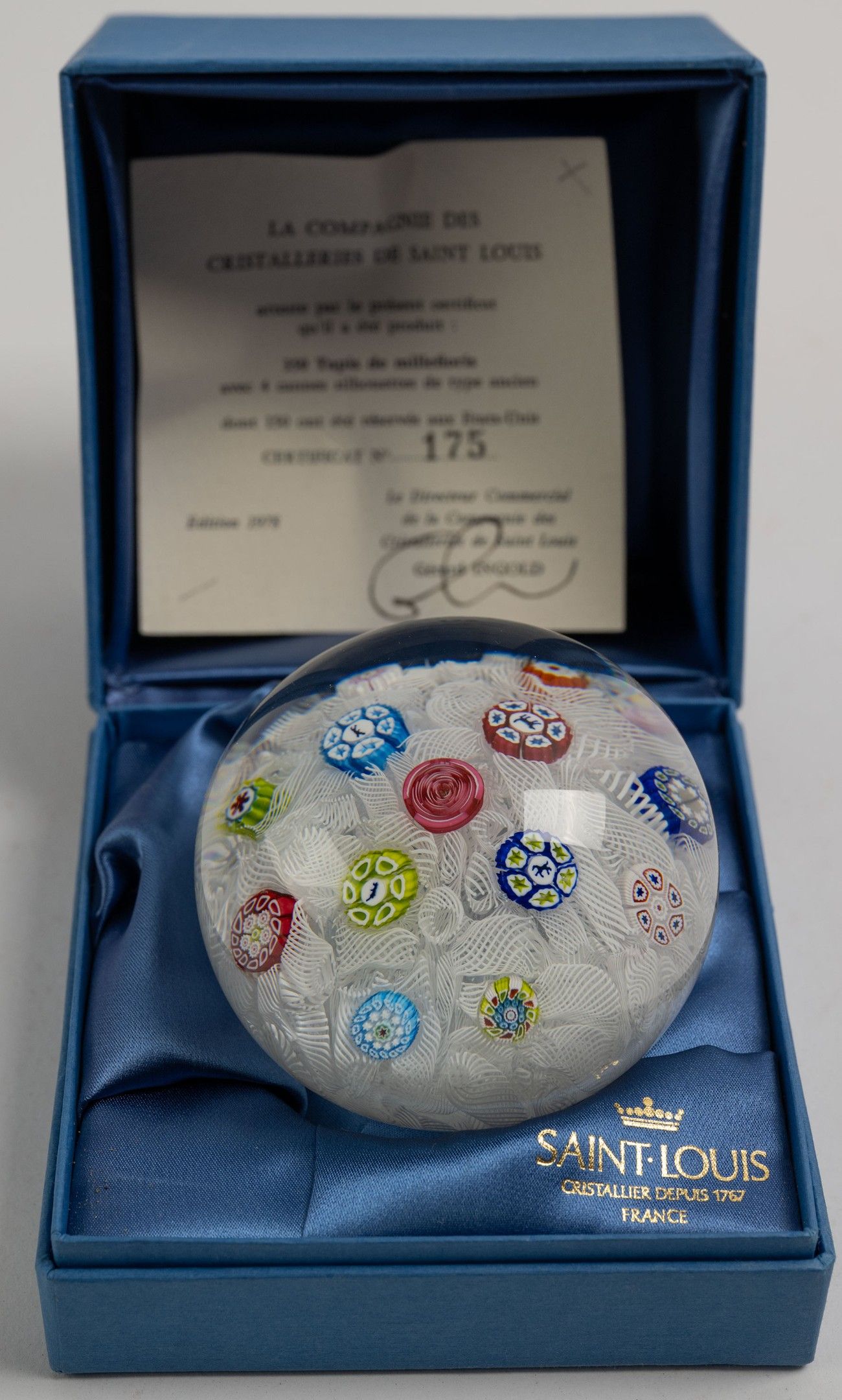 SAINT LOUIS, crystal paperweight, millefiori carpet, 1978, justified 175/350, in box with certificate