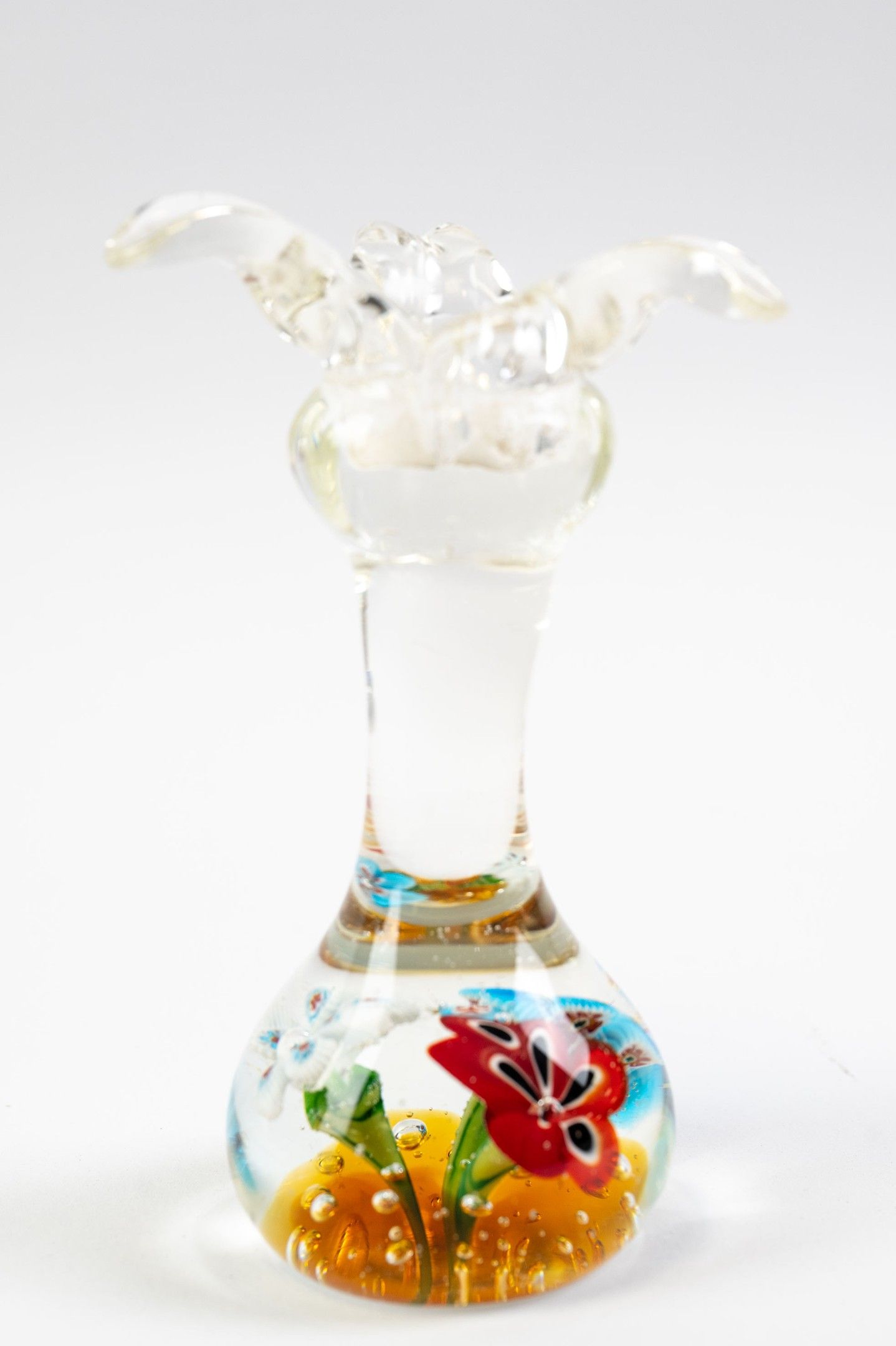 Glass candlestick with inclusions of coloured glass decorate…