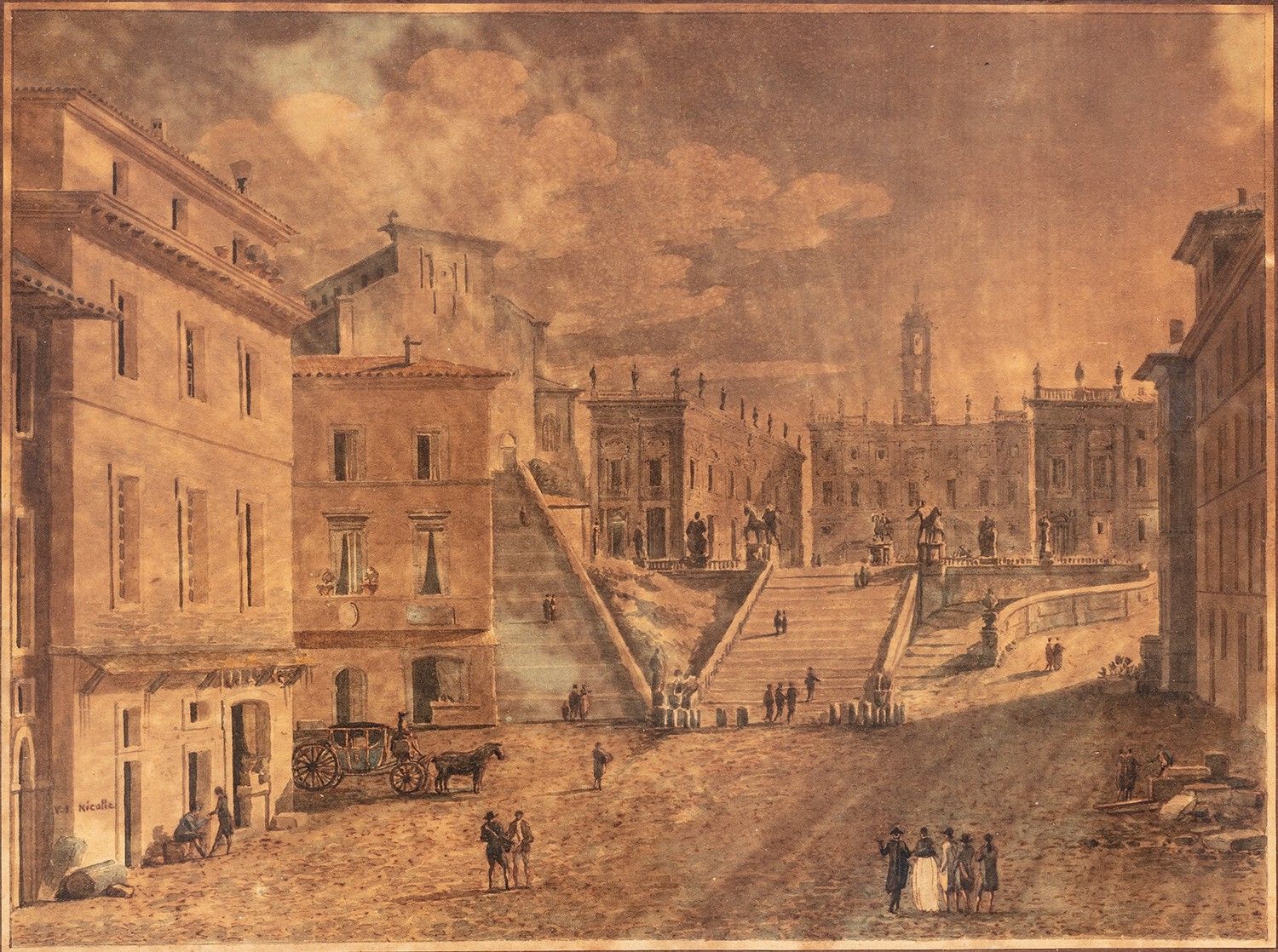 Pen and brown ink, watercolour, signed lower left v. j. nicolle