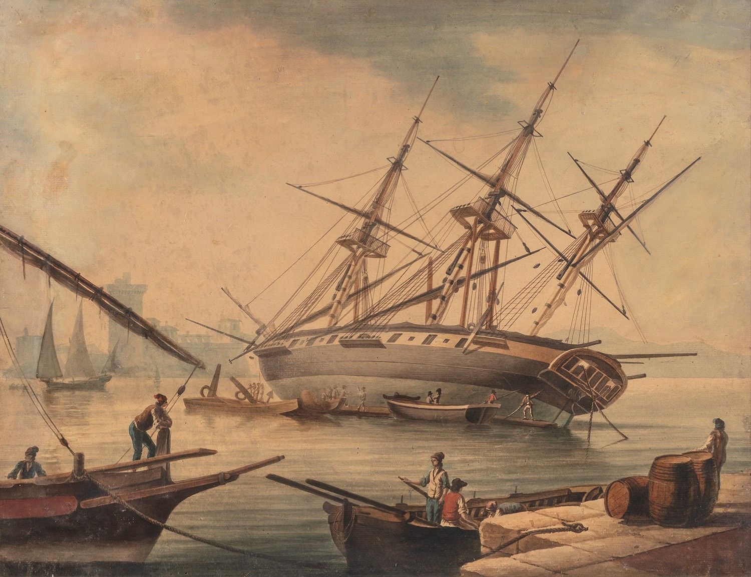 French school circa 1800 The careening of a ship
