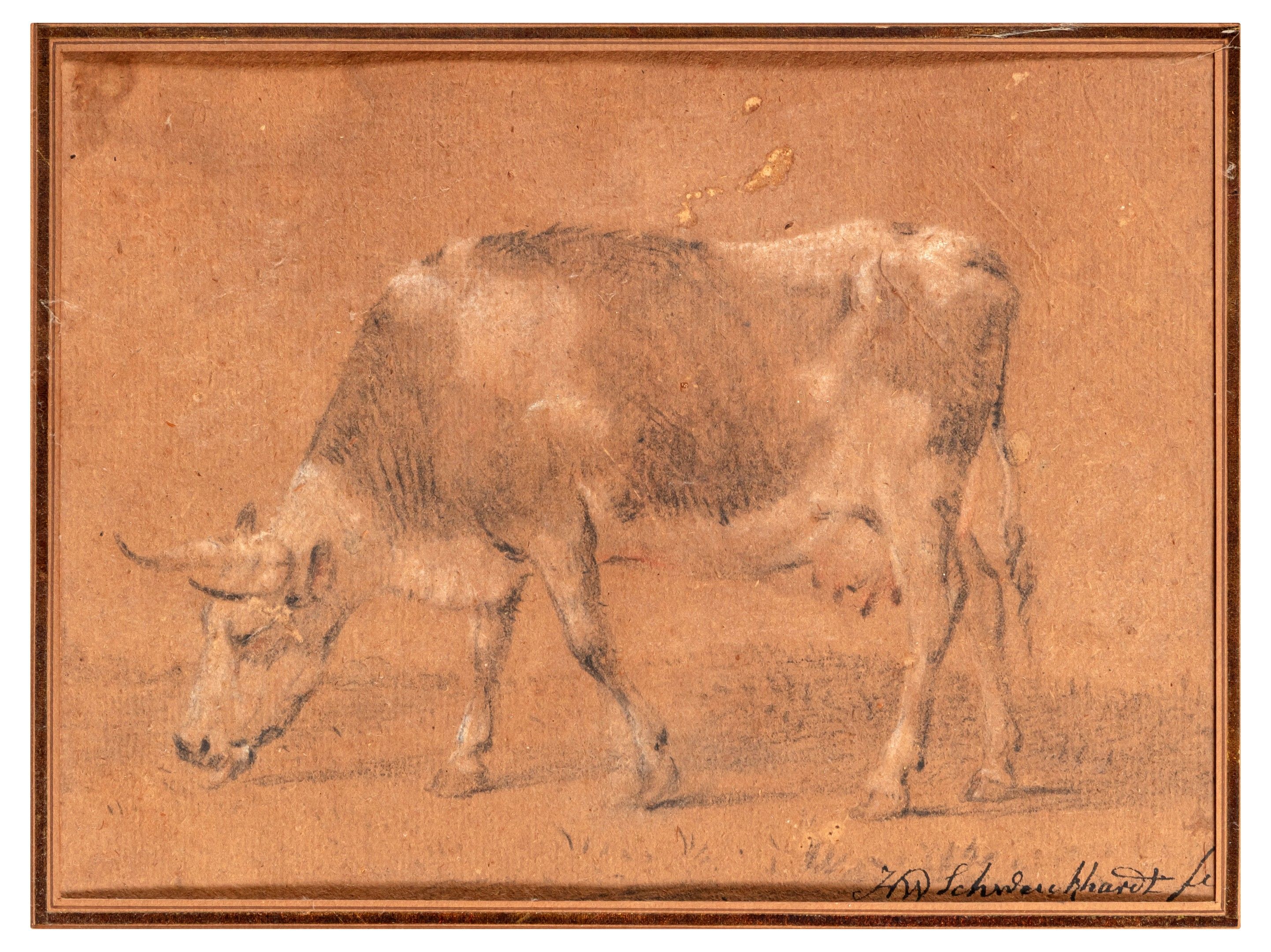 Black stone and white highlights on beige paper, signed lower right in pen and black ink HW Schweickhardt fec