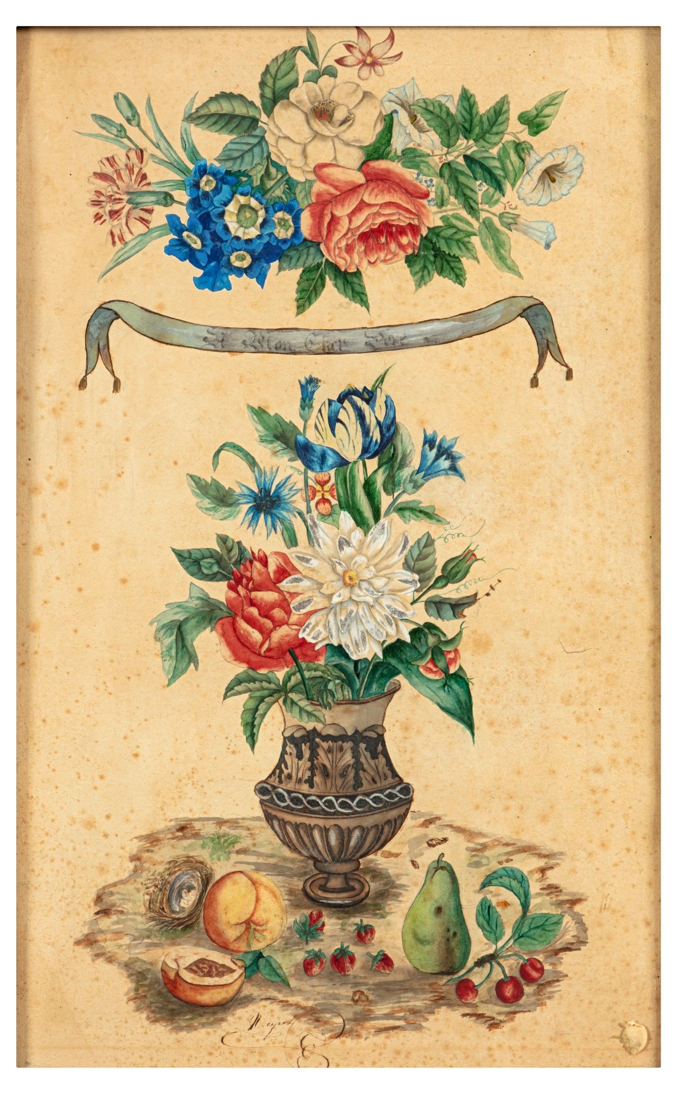 Watercolour and gouache, illegibly signed lower centre