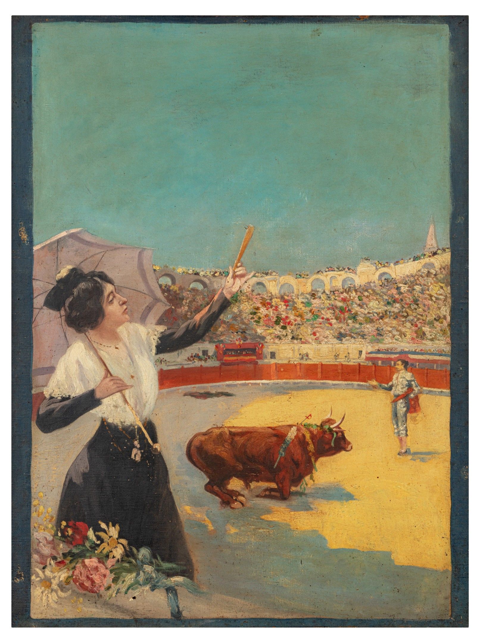 Modern school Corrida Oil on canvas. Bears a Sennelier stamp…