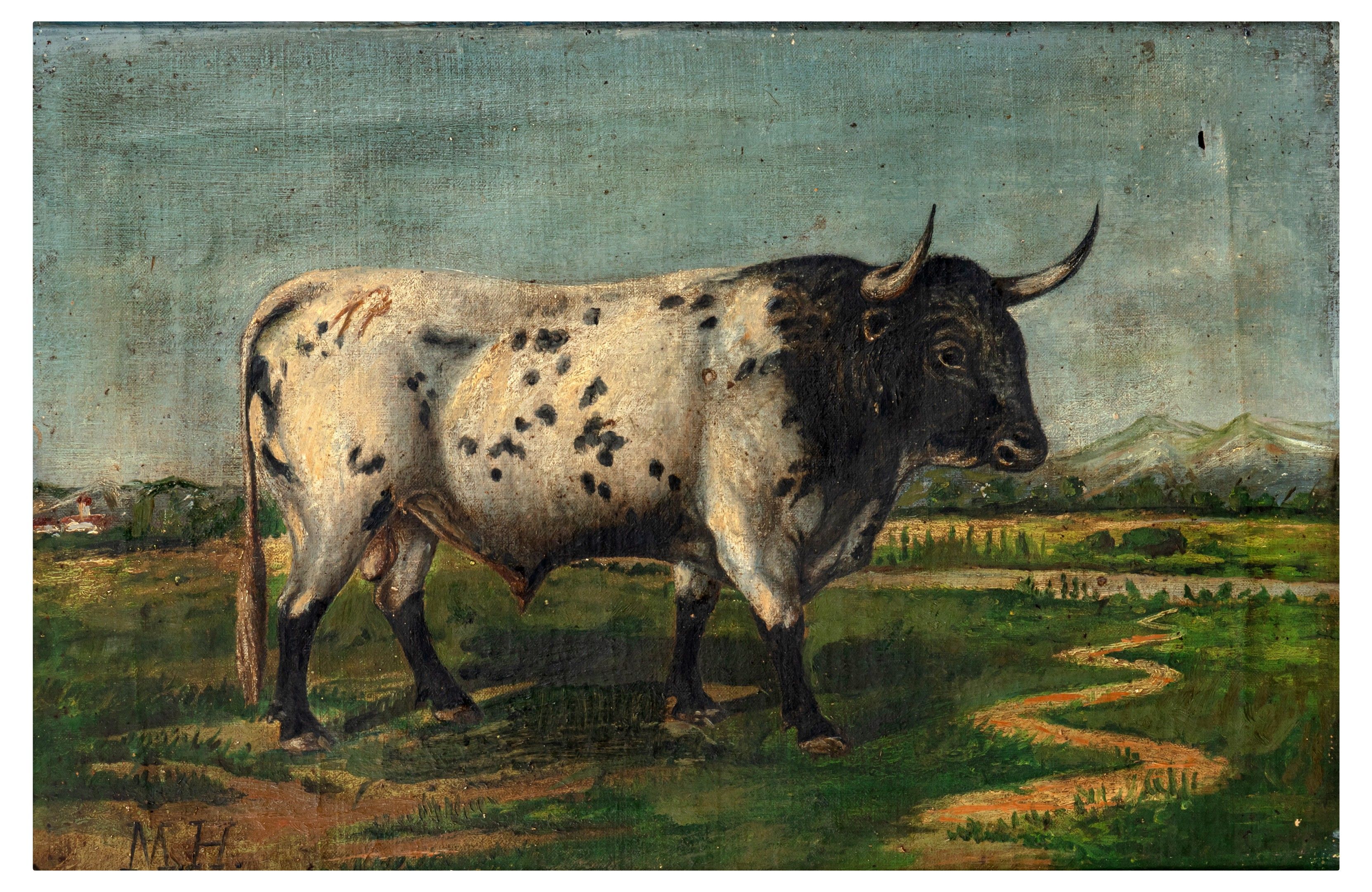 19th century school Bull Oil on canvas, signed M.H. lower le…