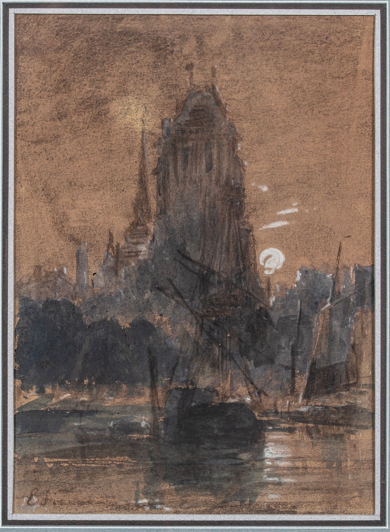 Drawing in wash and white highlights, signed with initials lower left