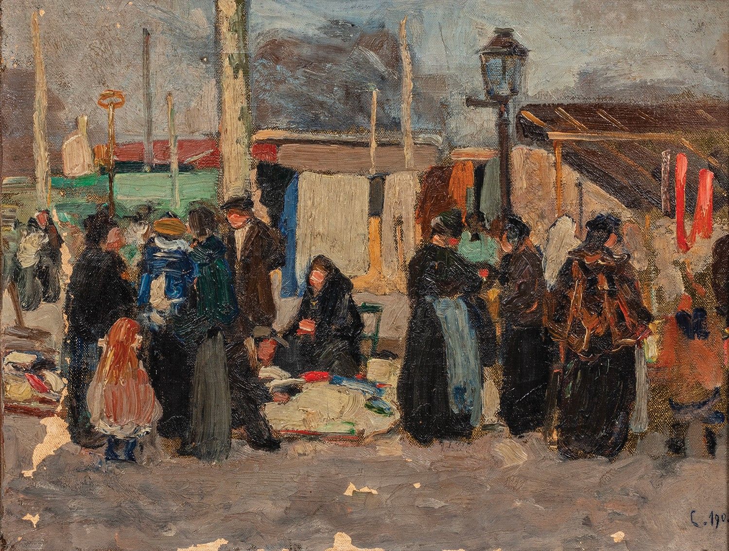 Modern school Market Oil on canvas, signed C and dated 1908 …