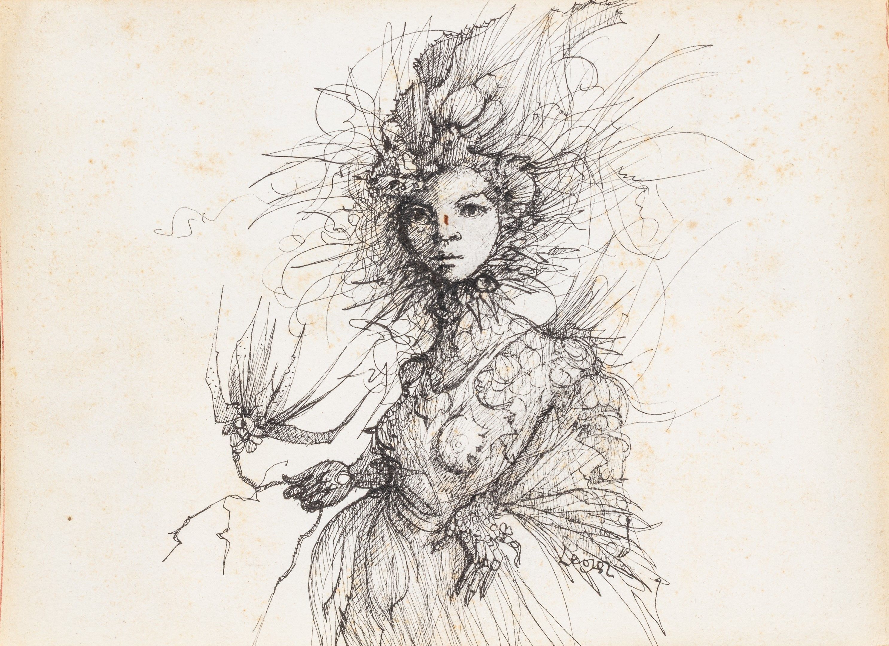 Pen drawing, signed Leonor lower right