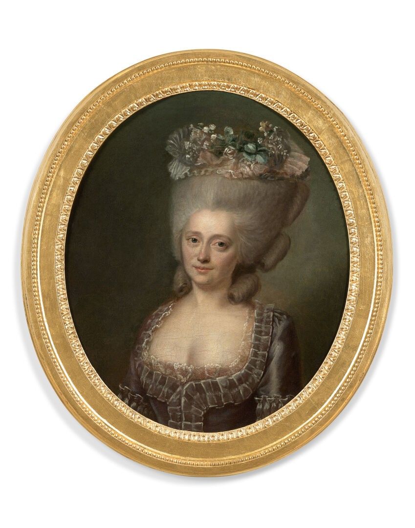 The identity of this couple remains unknown to this day; by choosing to be represented holding a pen in his right hand and a full calf binding on his left (largely hidden by the frame), Monsieur wished to perpetuate his taste for literary pursuits.