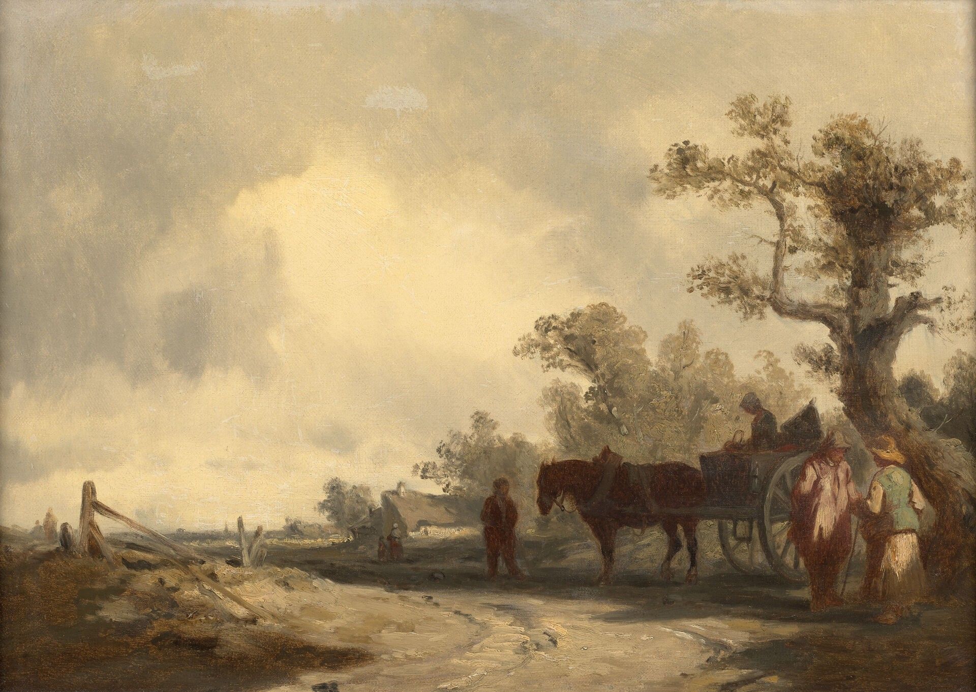 An Evening Landscape with figures on a road, 12 ½ by 17 3/4 in.).