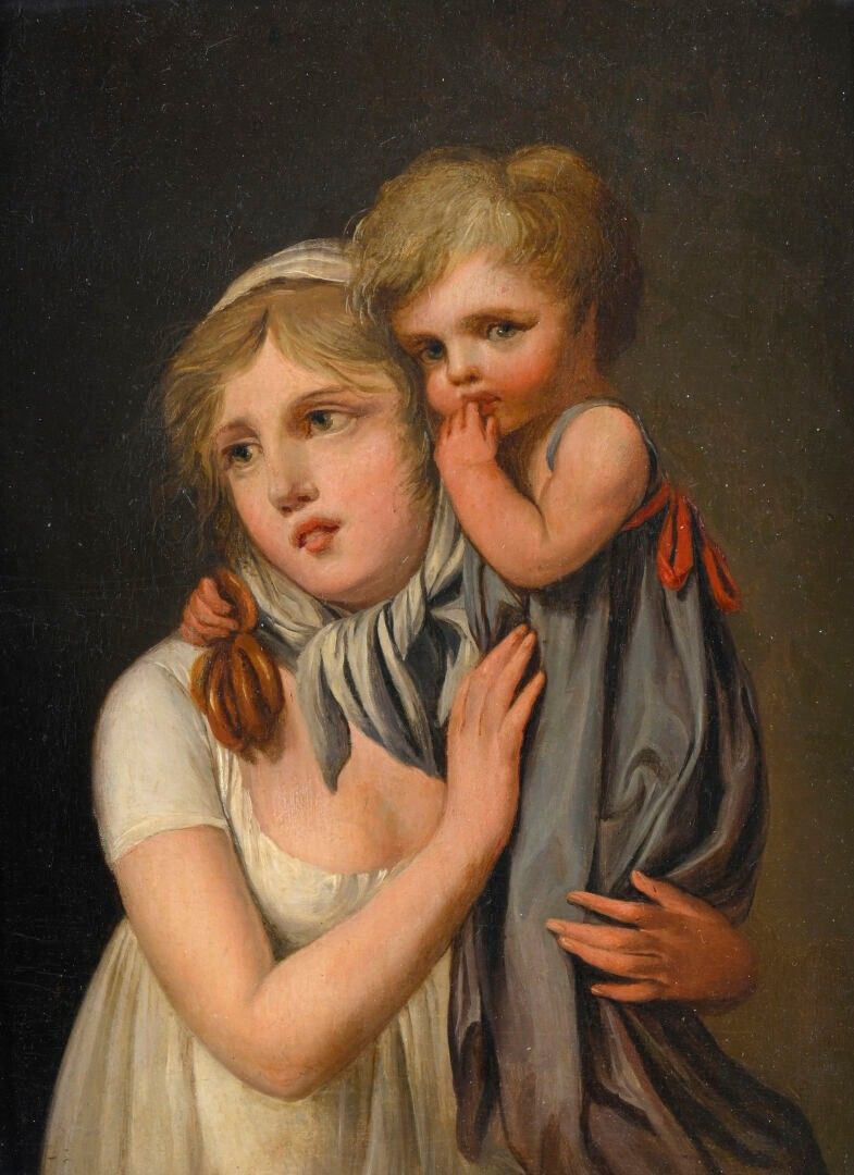 Brother and sister. It is described as follows: "A young blonde girl, in a low-cut white dress, her arms half-naked, a kerchief on her head and her head covered with a scarf.