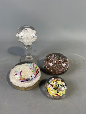 Murano glass pieces are distinguished by their bright colours and inclusions of bubbles or filigree, and are sometimes attributed to Venini, Barovier & Toso, Seguso or Salviati. French glassware includes works by Daum, Lalique, Baccarat, Legras, Muller Frères, Schneider and Saint-Louis, combining techniques such as pâte de verre, acid etching, enamelling and multi-layered glass.