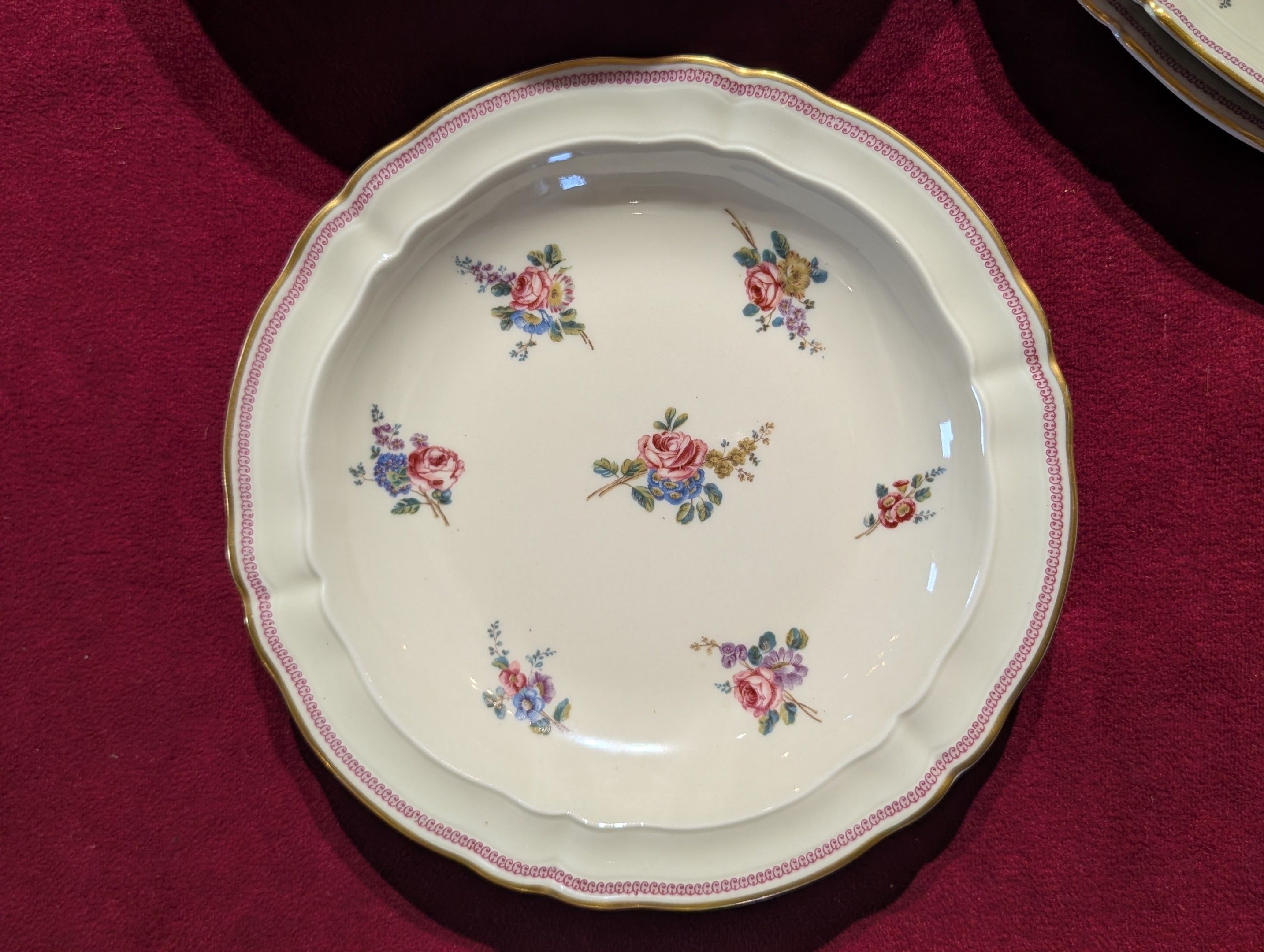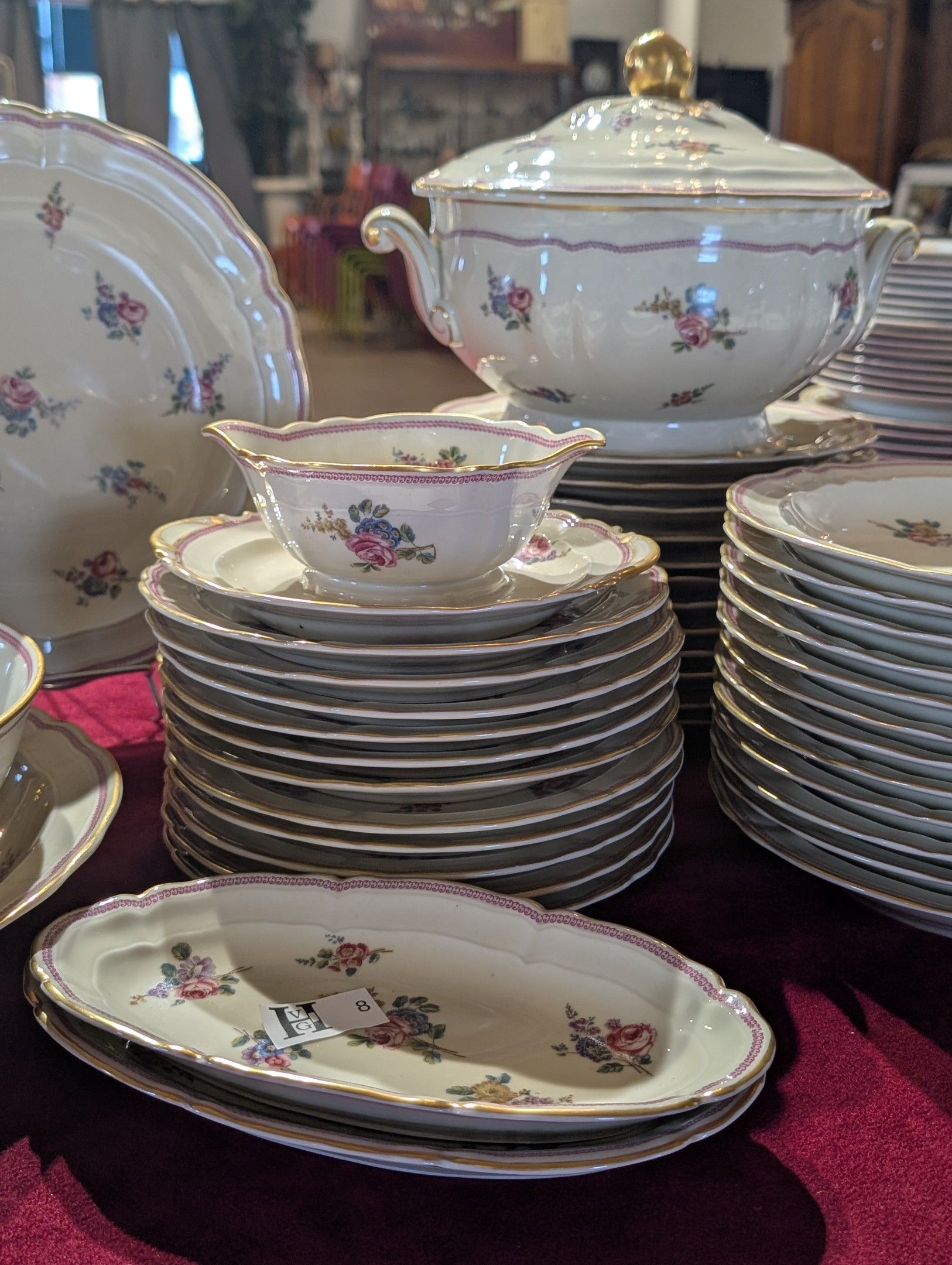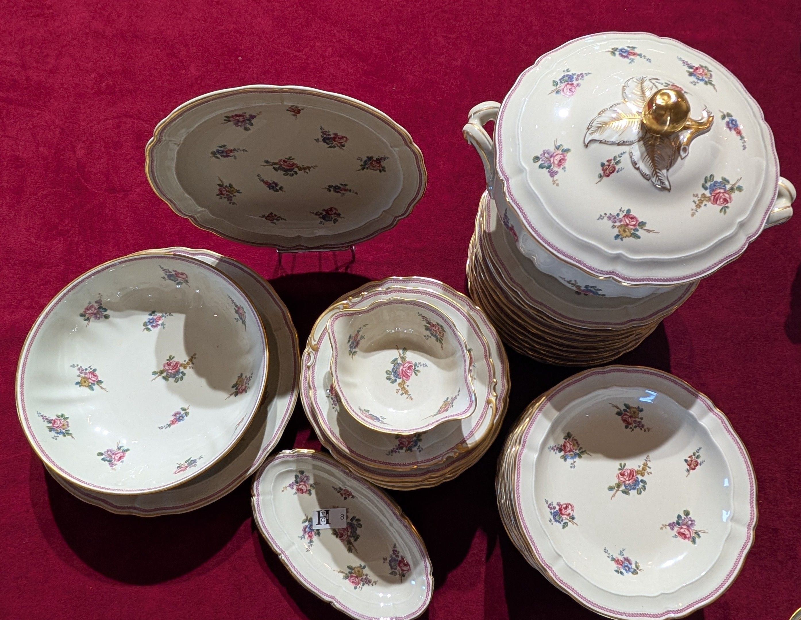 Important 44-piece dinner service in Limoges porcaleine, Sèvres model, stamped L.Bernardaud et Cie, comprising 12 dinner plates, 12 dessert plates, 12 soup plates, a tureen, a salad bowl and 6 shaped pieces - All in good condition - Note some missing gilding.