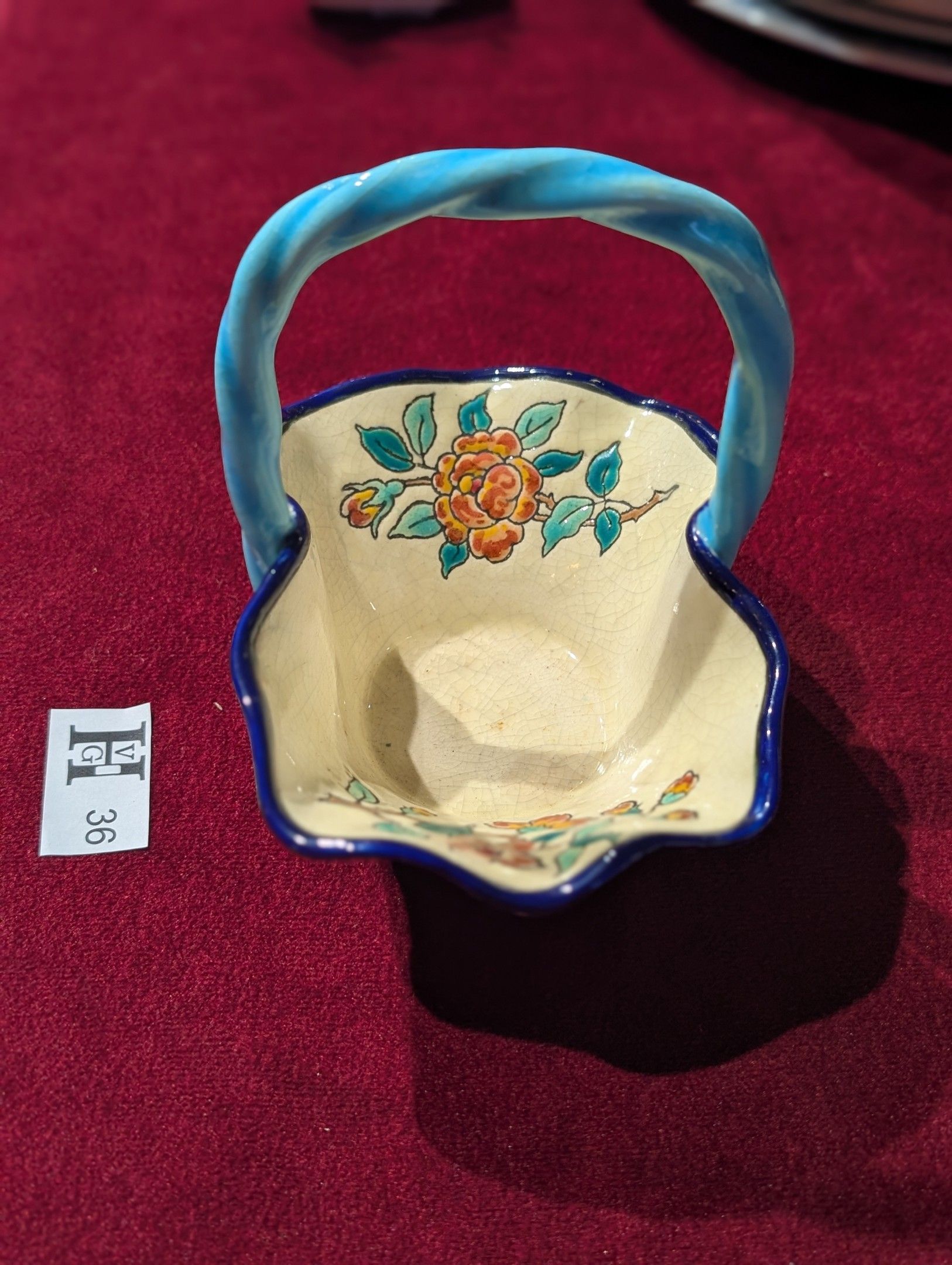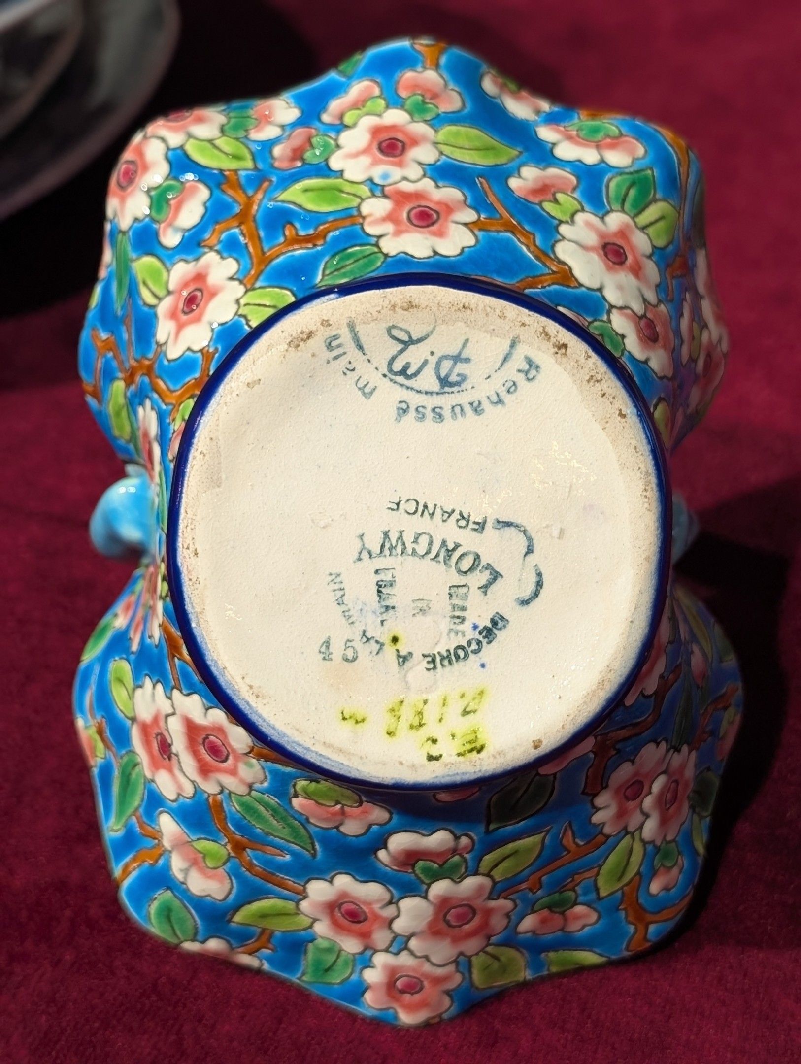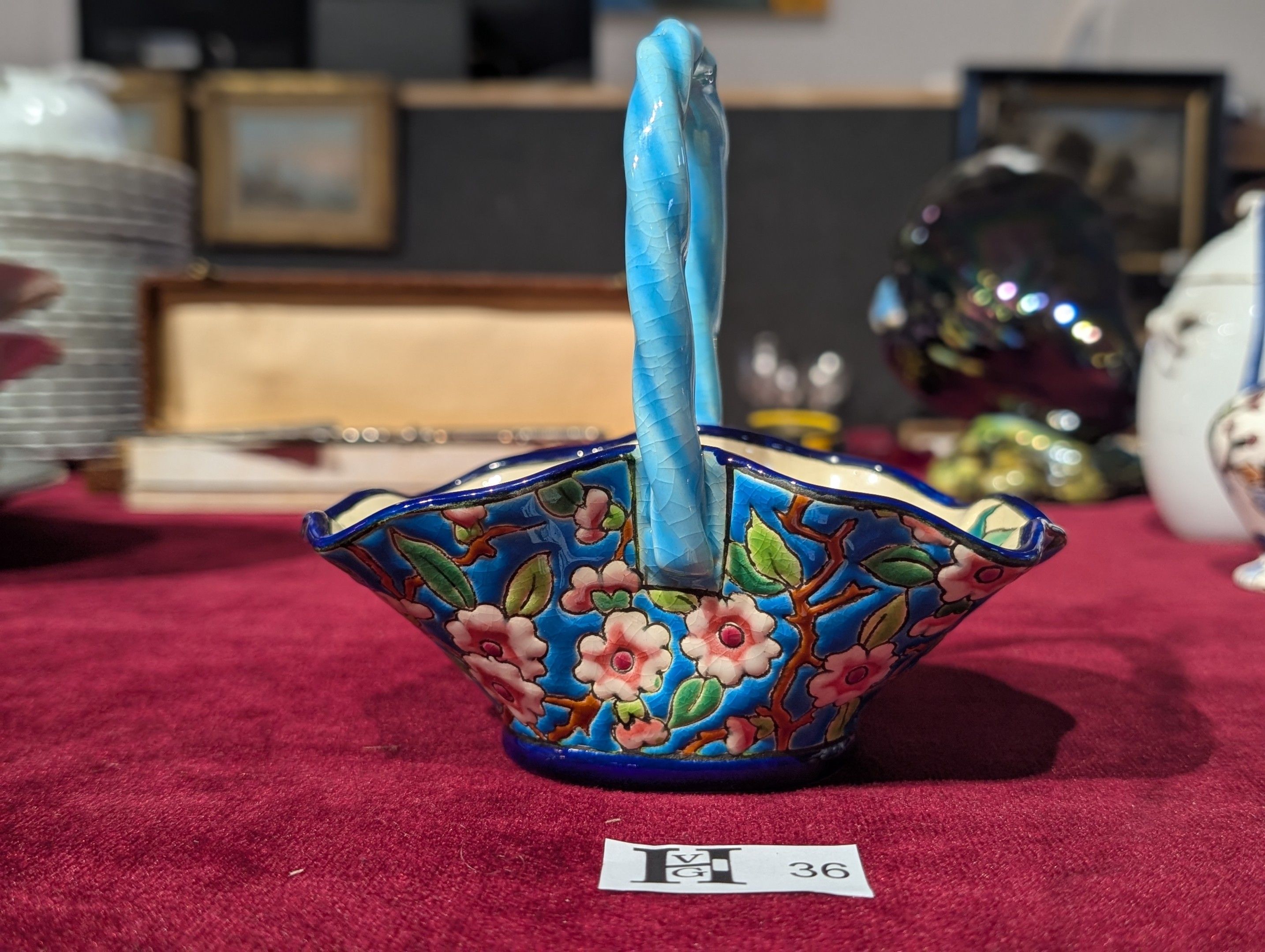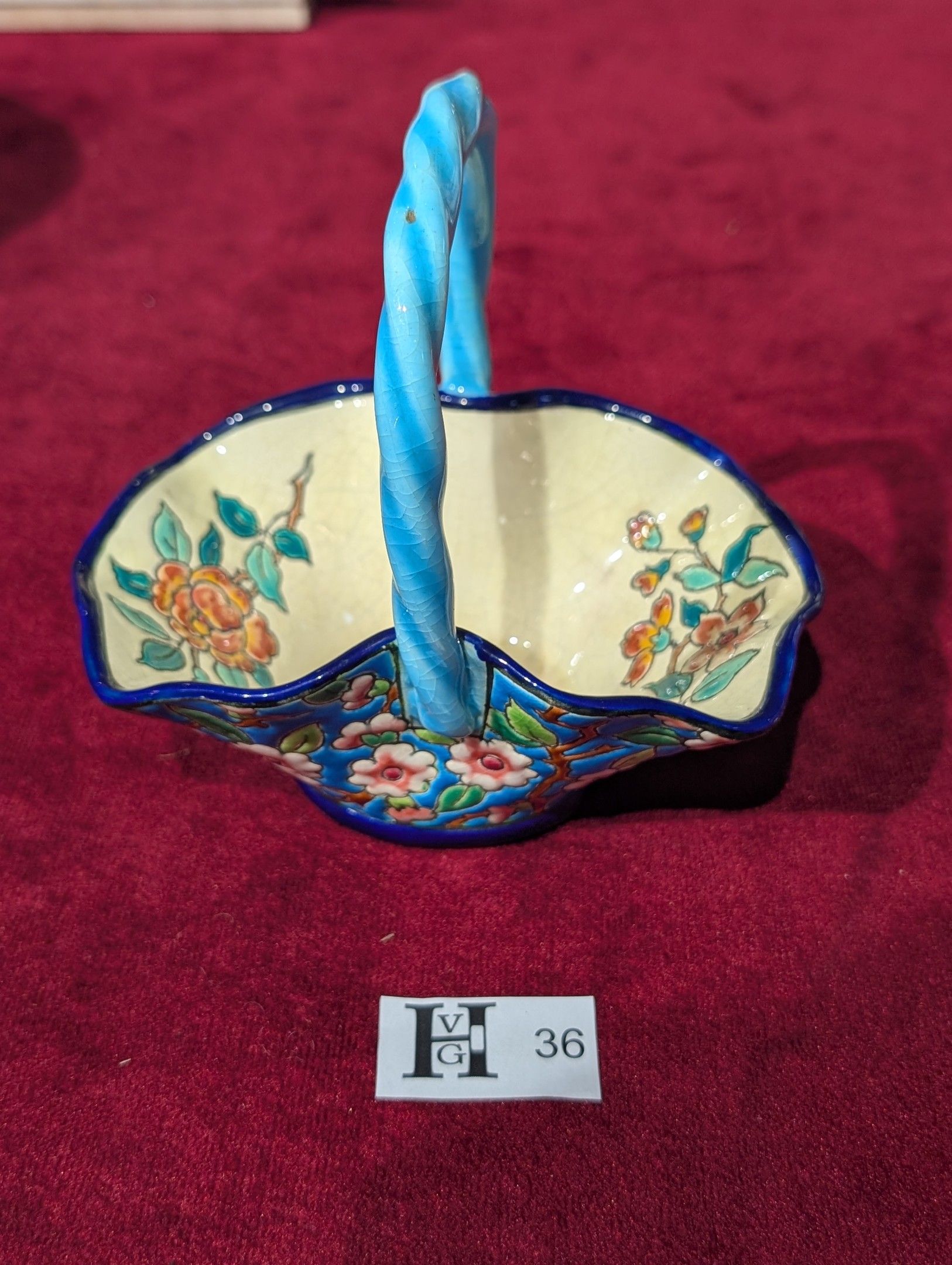 Longwy - Small earthenware basket with polychrome enamel dec…