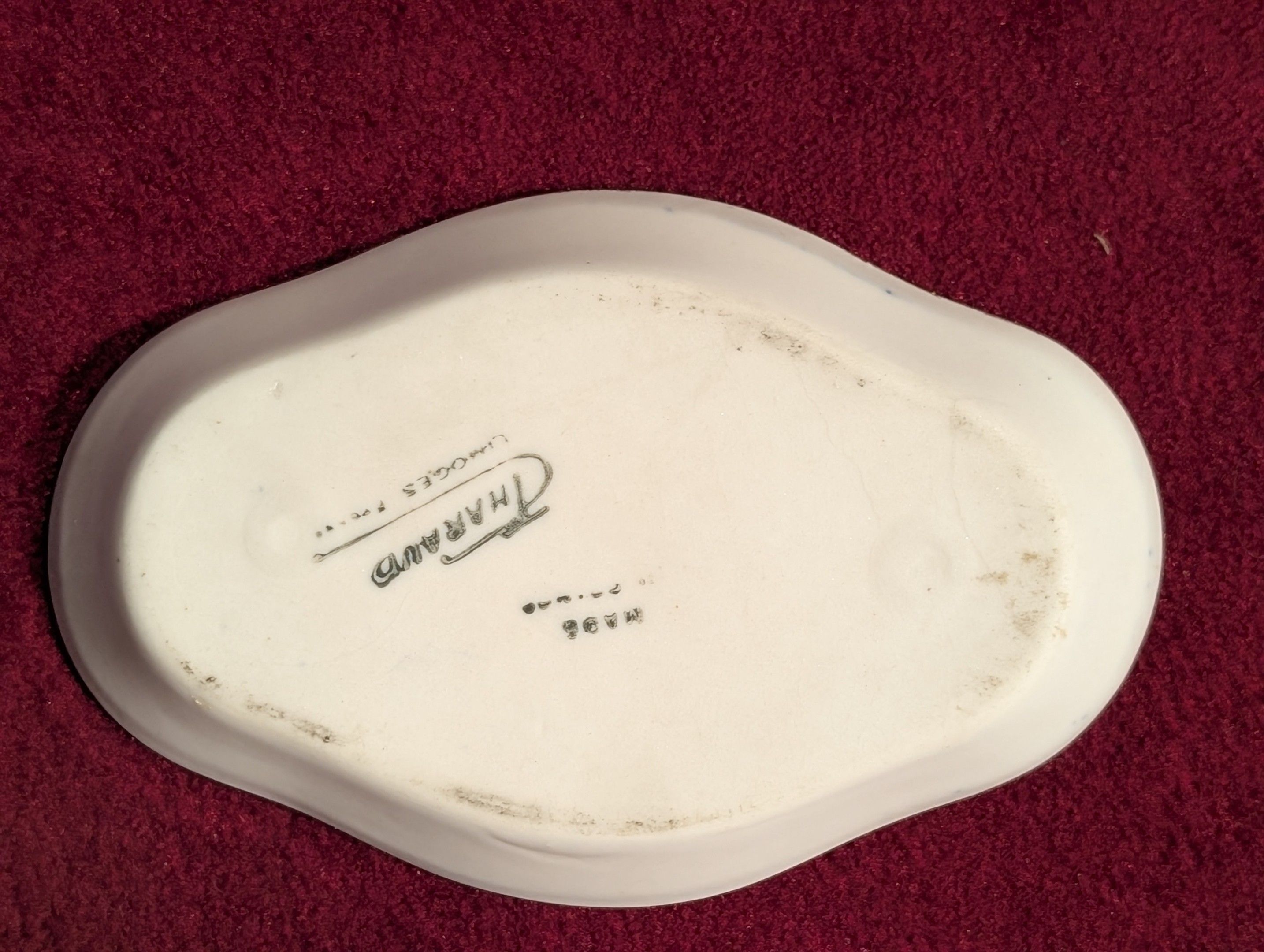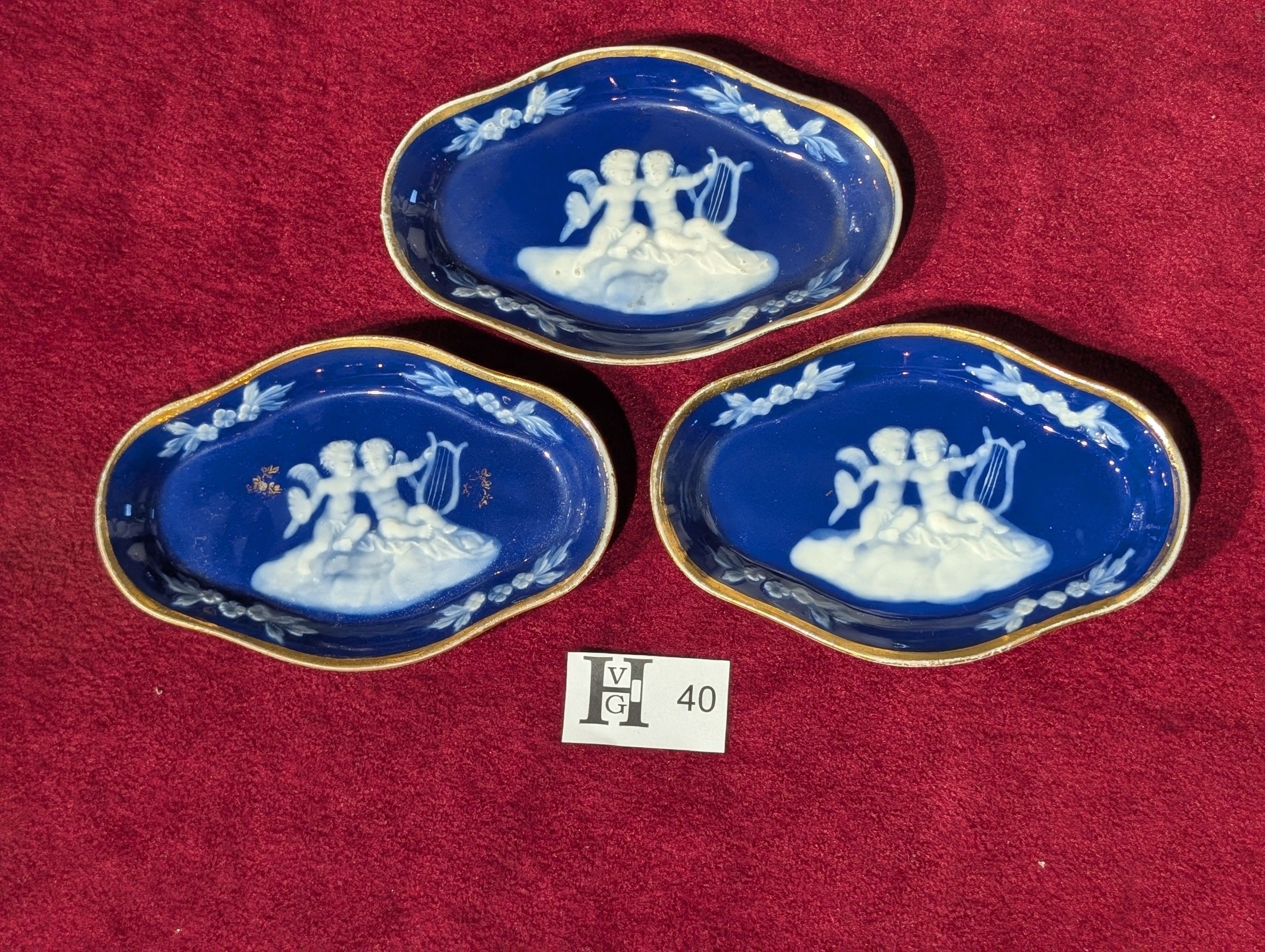 Camille Tharaud - Réunion de 3 coupelles/baguiers en porcelaine de Limoges - Décor aux cherots - Dim. 8 x 12 cm - Note the slight lack of gilding