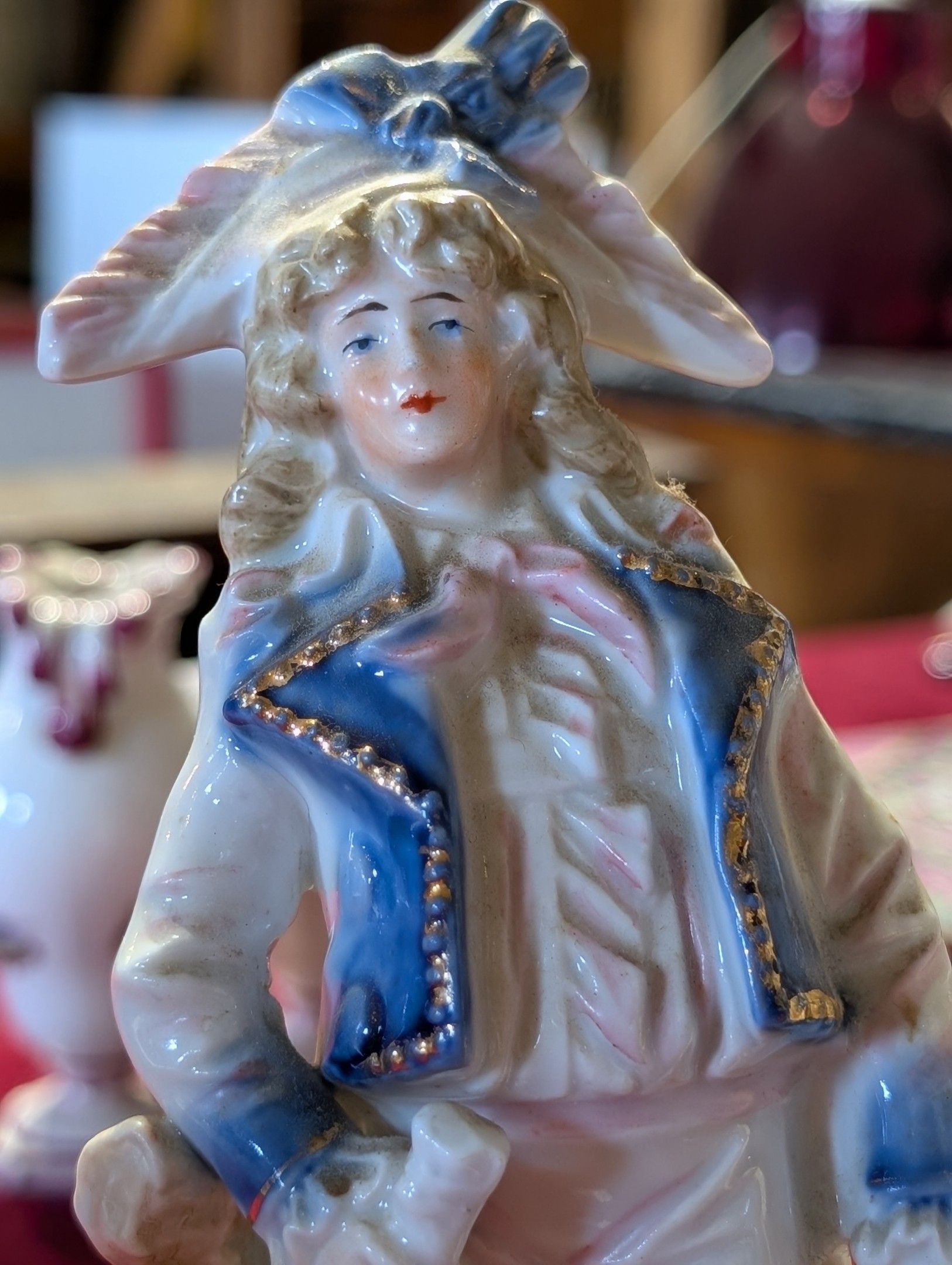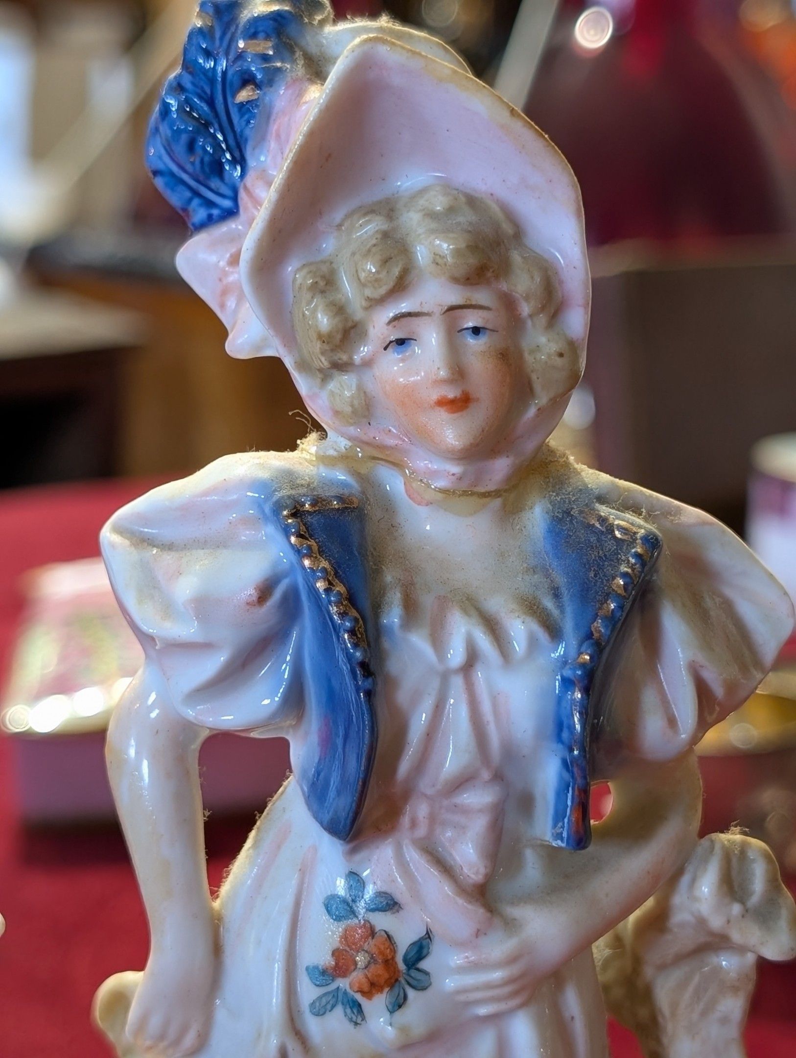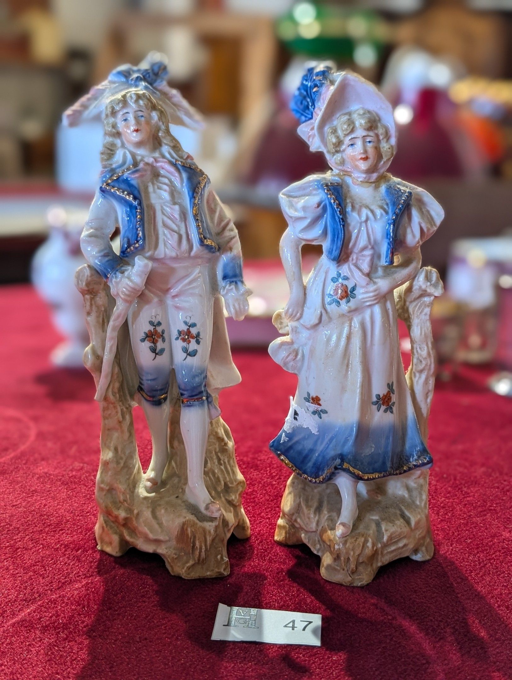Polychrome porcelain couple Mr (H. 20.5 cm) / Mrs (H. 19.5 cm) - A few accidents to the base for Mr and the cane tip is missing.