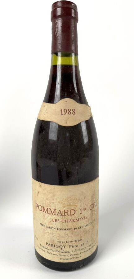 POMMARD 1ER CRU "LES CHARMOTS". One bottle. Year 1988. Level 1.5 cm. Scratched and torn label.