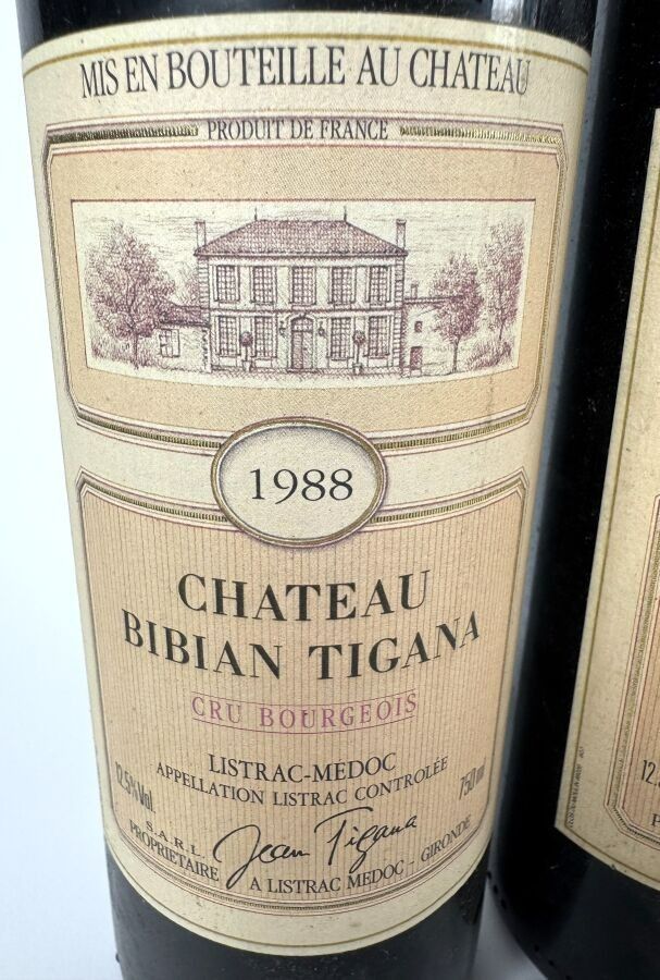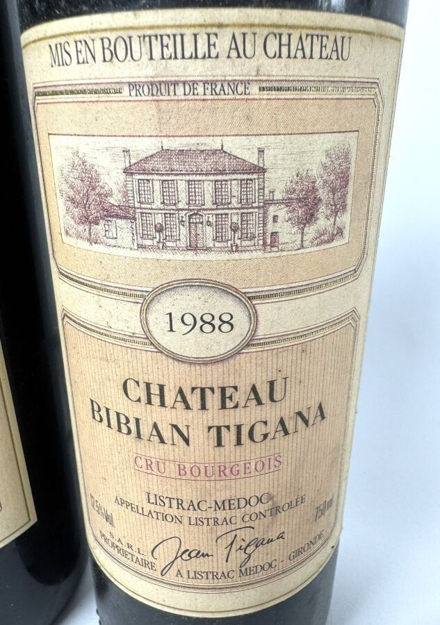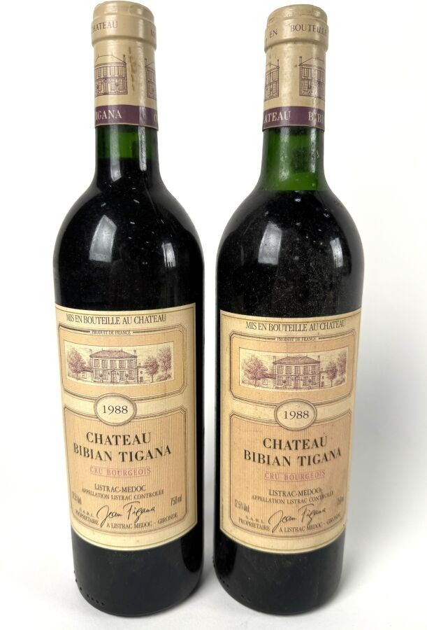 CHATEAU BIBAN TIGANA. Cru Bourgeois. Two bottles. Year 1988.