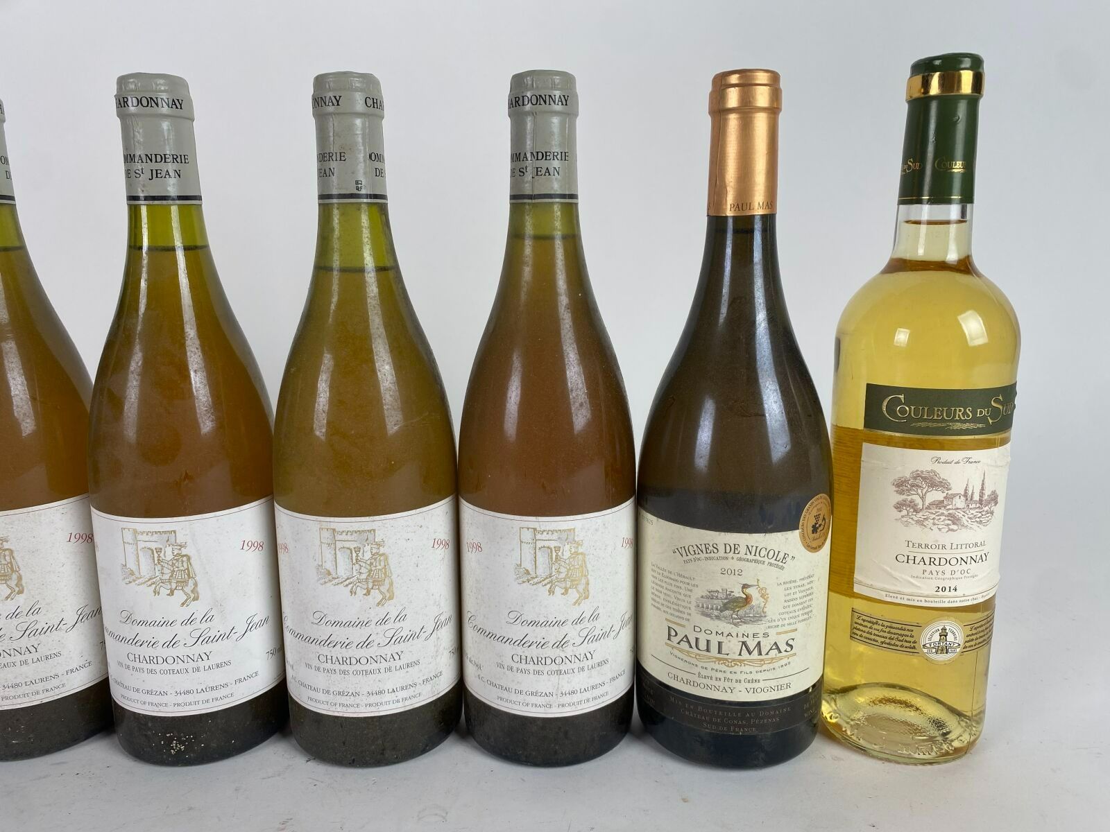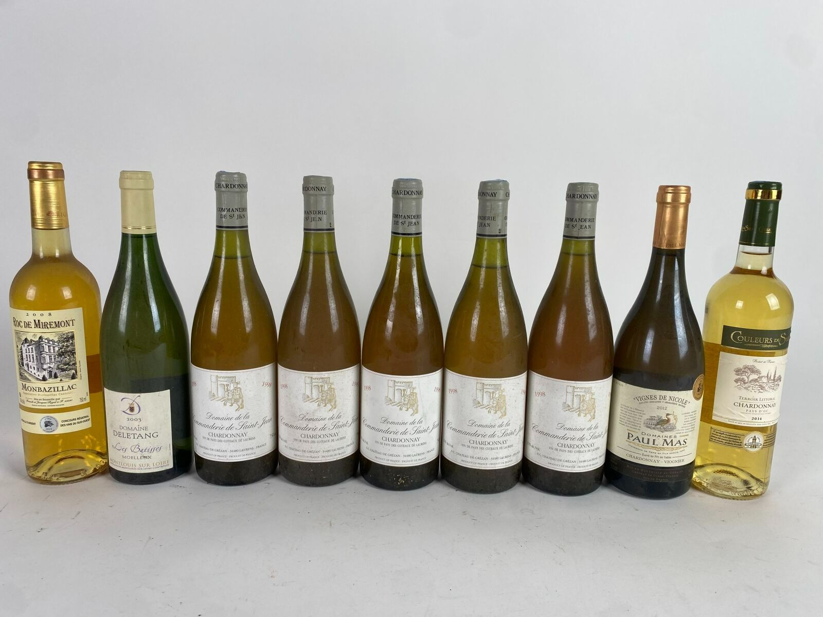 LOT bottles of wine including seven wines from the LANGUEDOC (5 Domaine de la Commanderie de Saint-Jean, 1998, 1 Domaine Paul Mas, 2012 and 1 Terroit Litorral), one MONBAZILLAC, Roc de Miremont, 2008 and one MONTLOUIS SUR LOIRE, Domaine Deletang, 2003.
