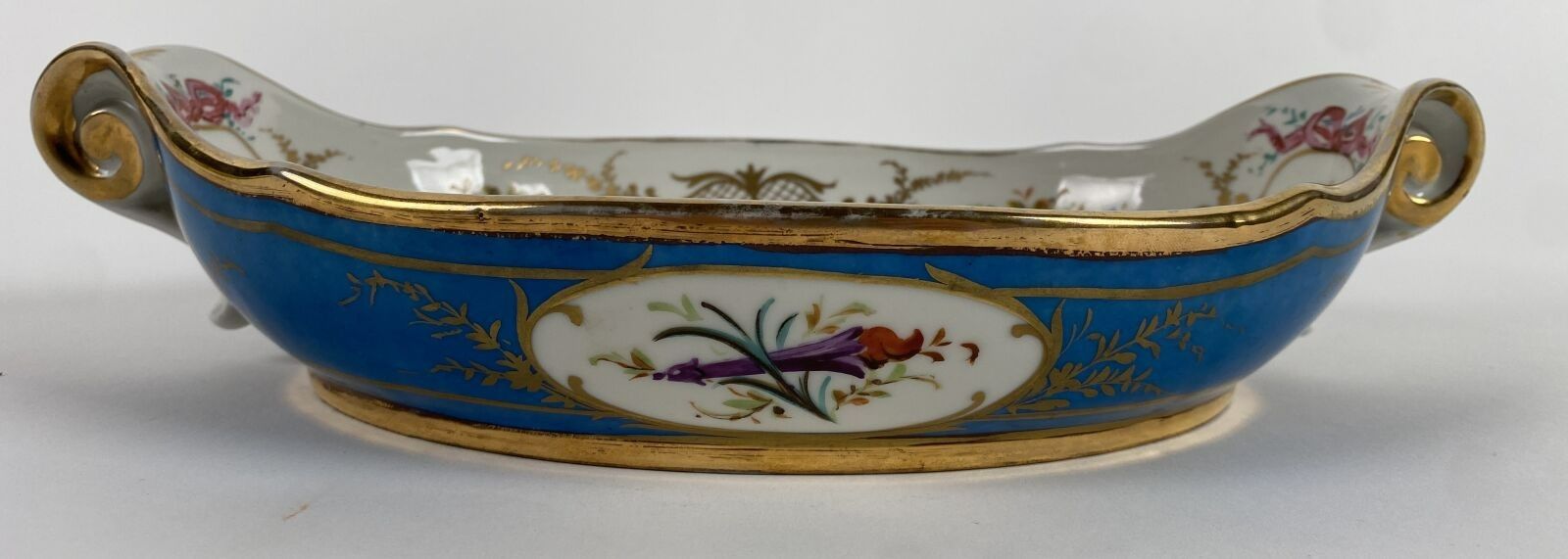 In the Sèvres style Bowl decorated with roses, truquoise blu…