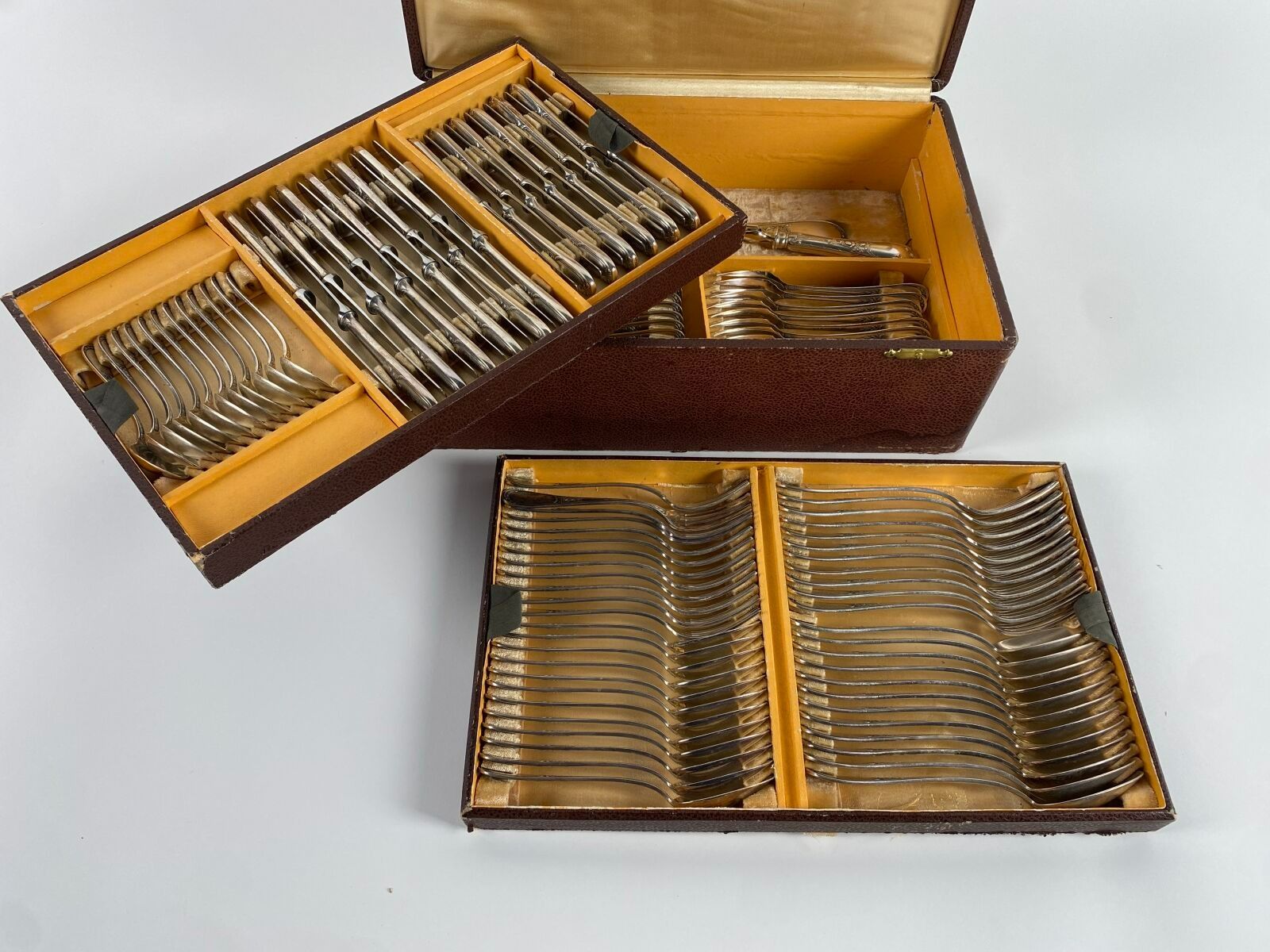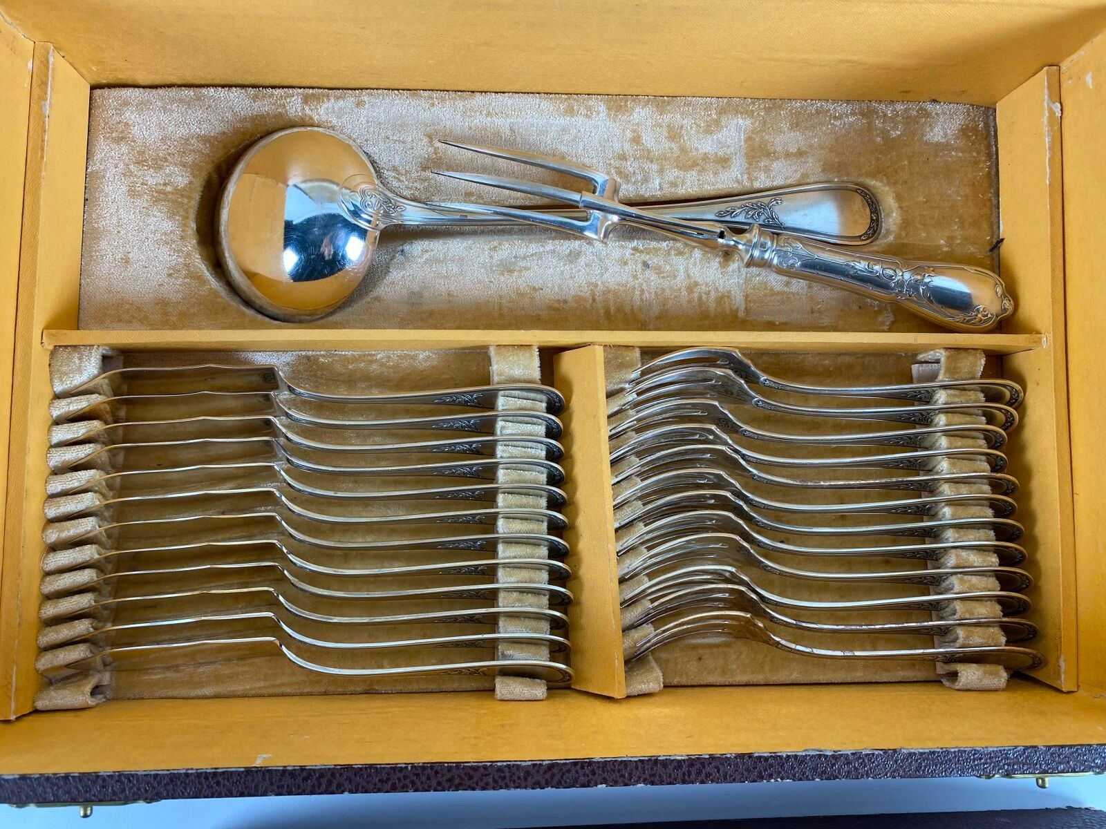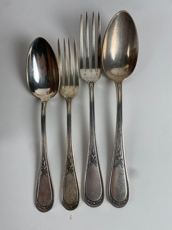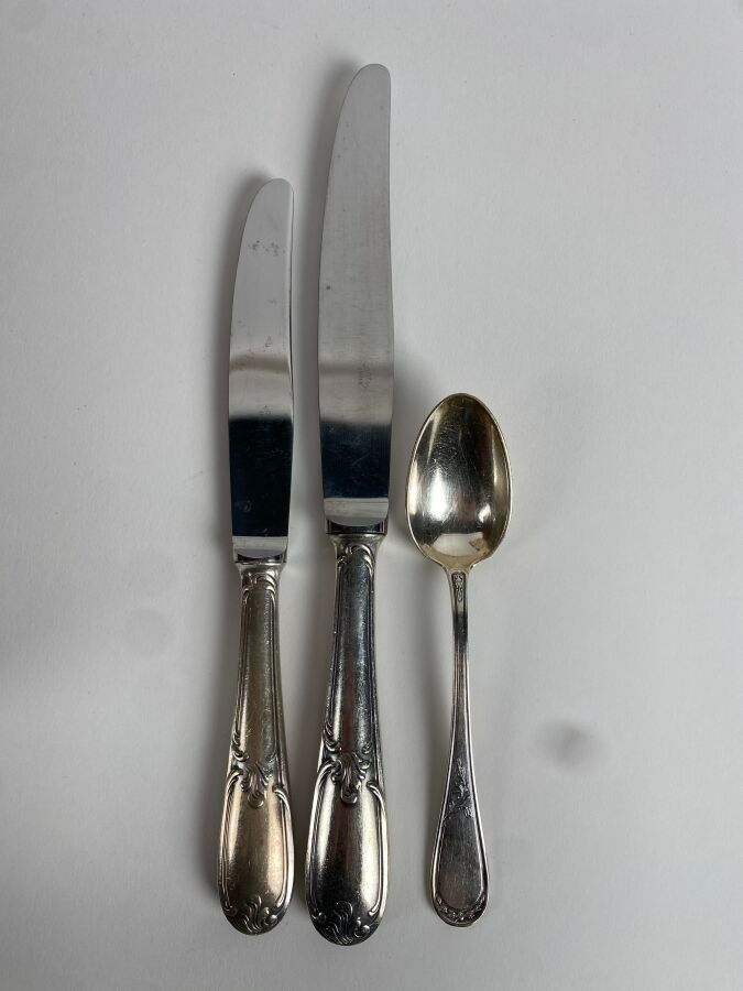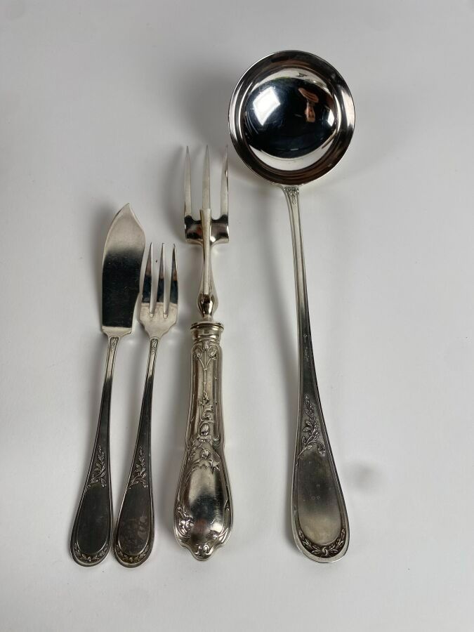 SFAM. Silver-plated household set with net and foliage decoration comprising 110 pieces including fish service, large cutlery and knives.