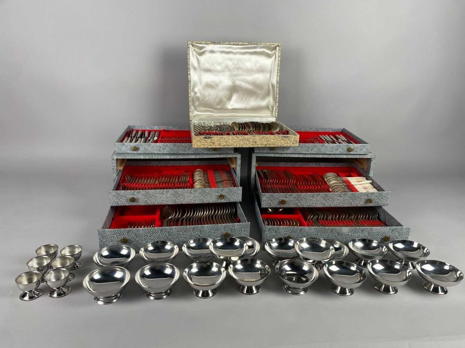 LOT OF SILVER METAL: a case containing large cutlery and a m…