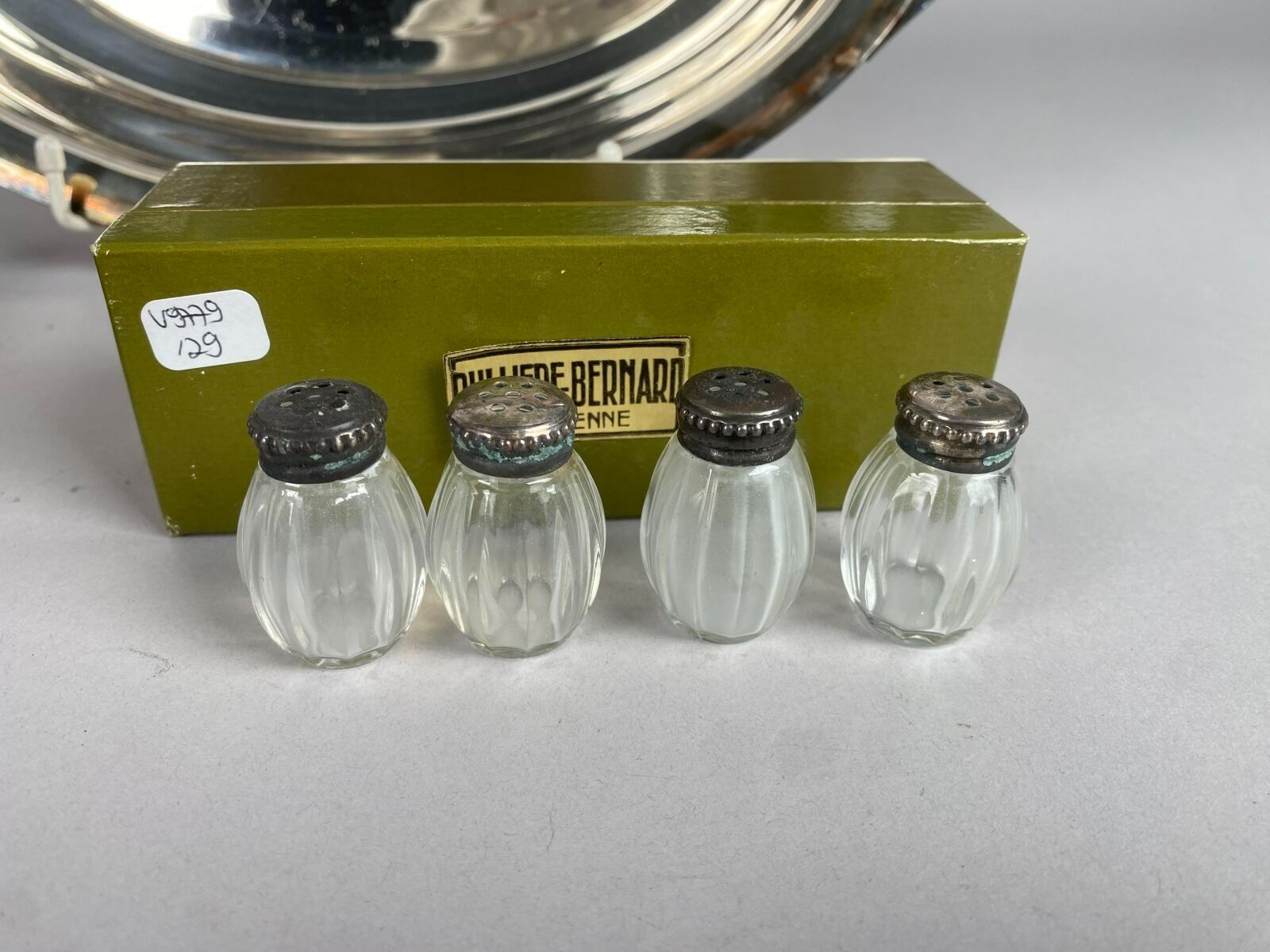 Two silver plated dishes, 4 Christofle saltcellars, 11 silve…