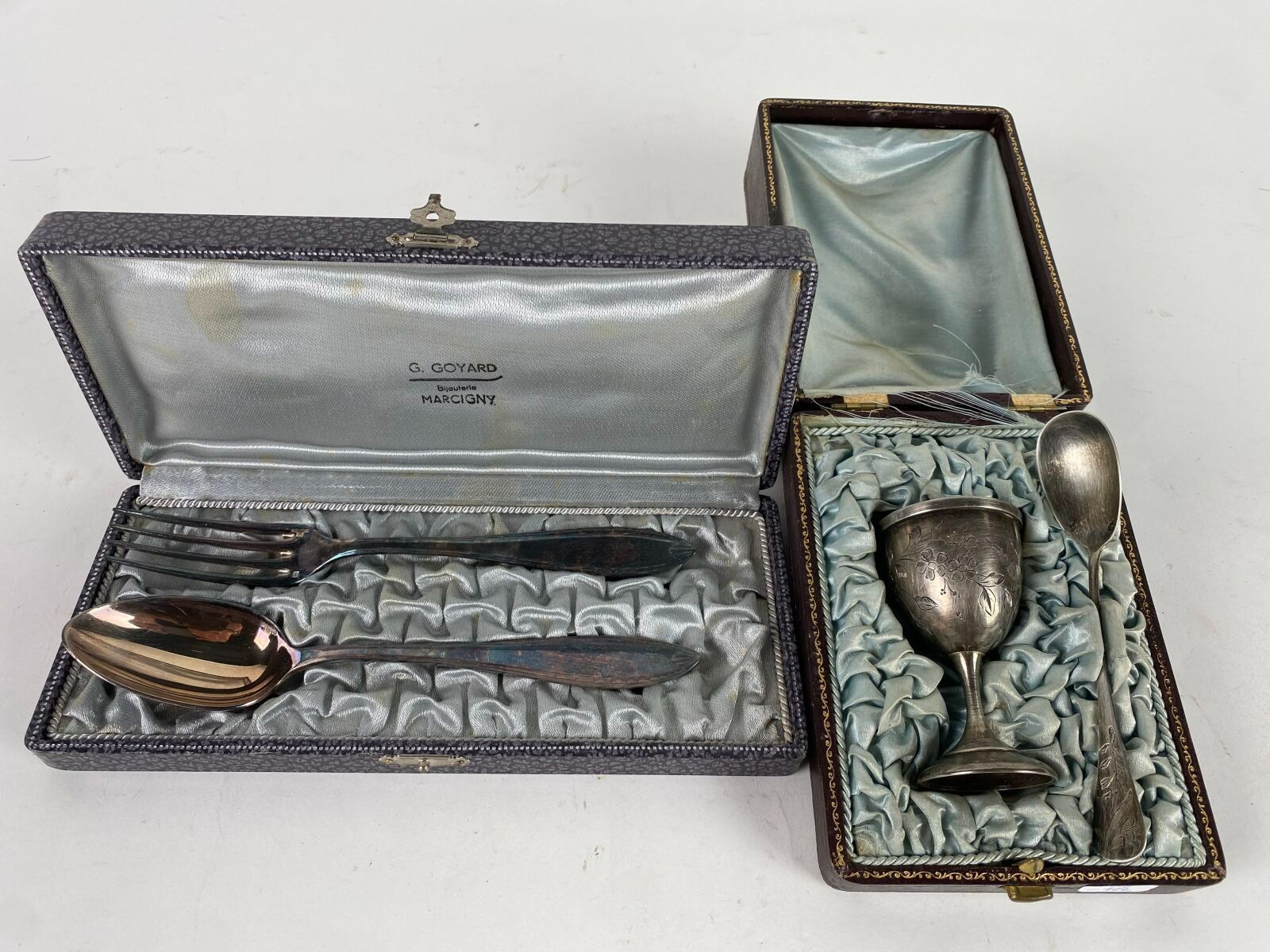 A Minerve silver christening set comprising an egg cup and a teaspoon, 39.8 g net.