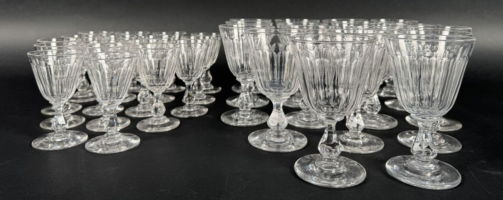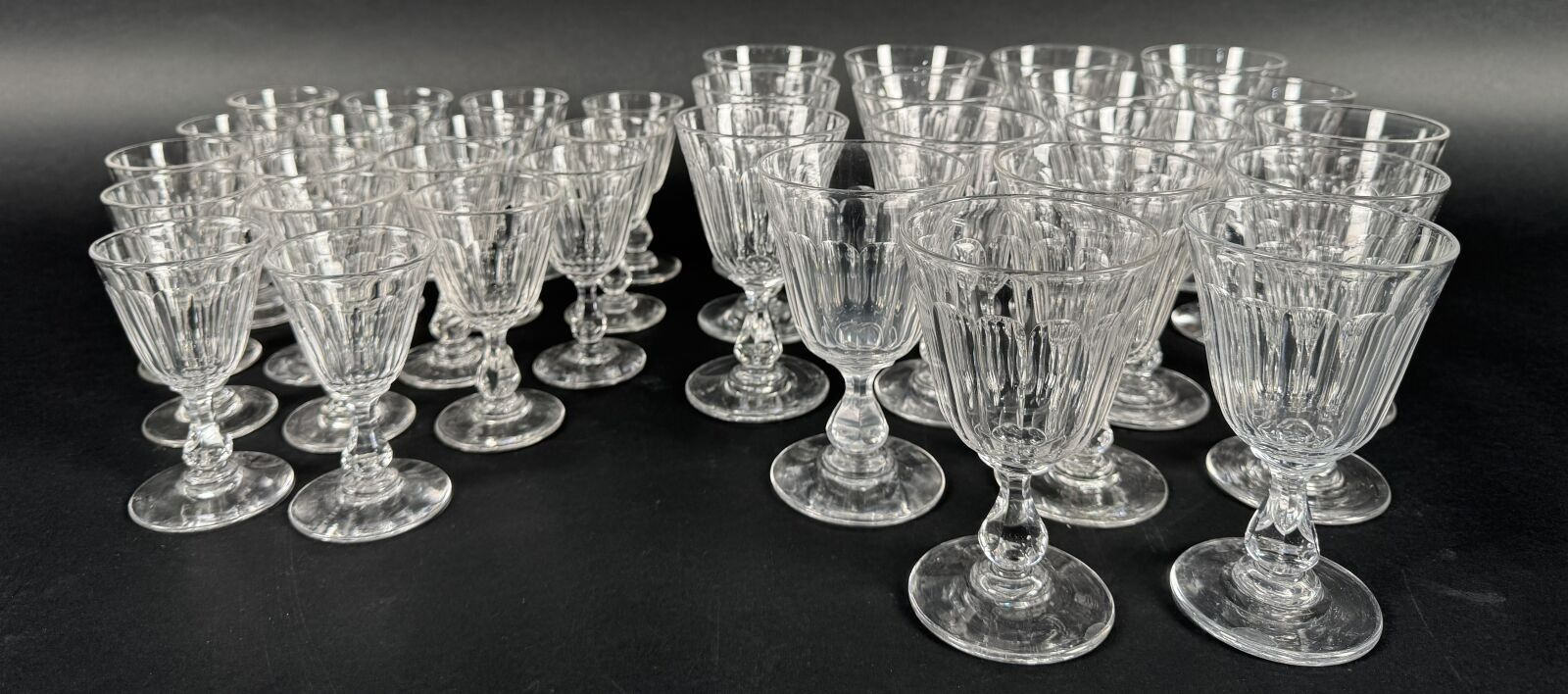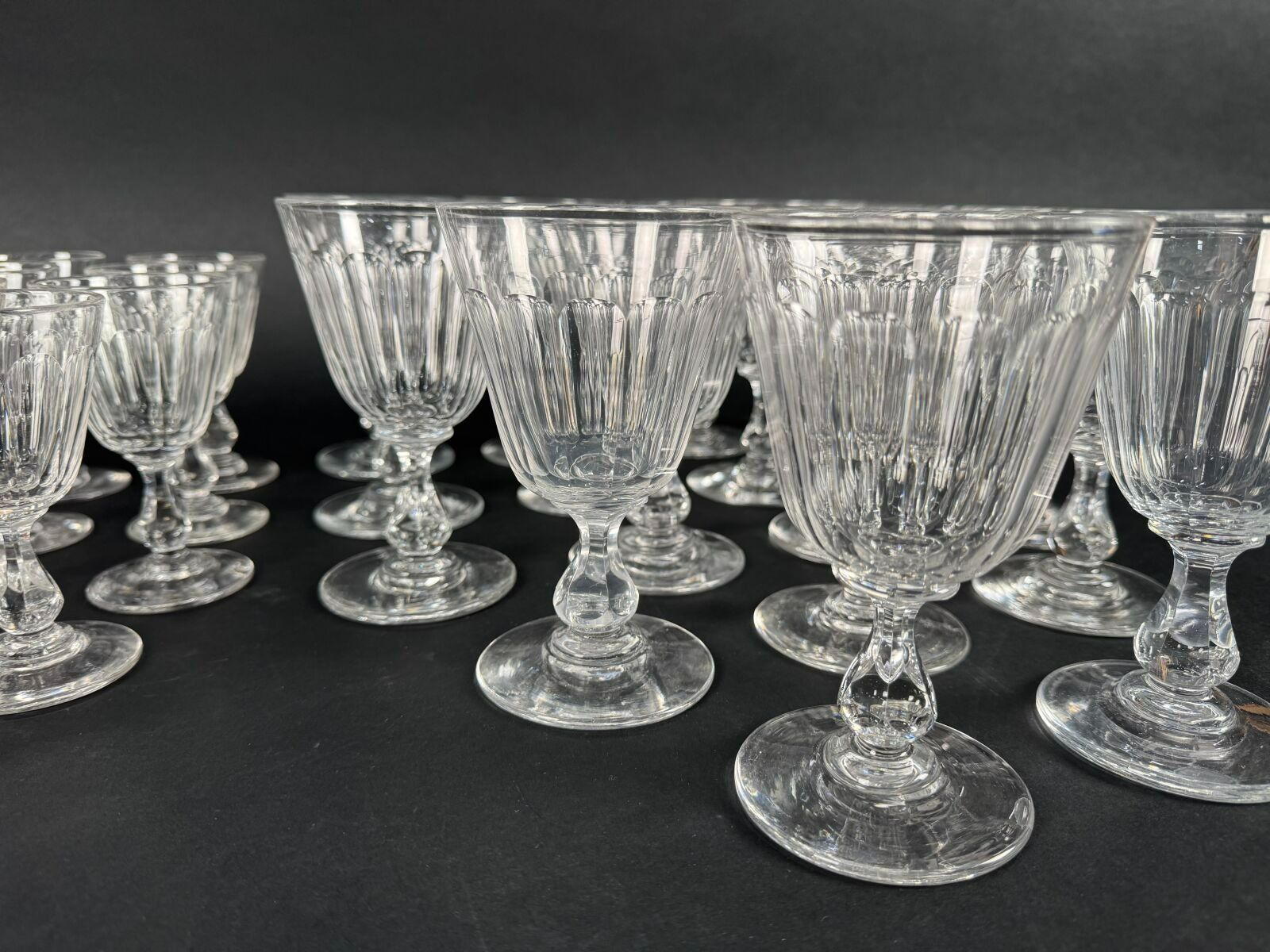 Part of a set of crystal glasses comprising 17 large glasses and 17 small glasses.