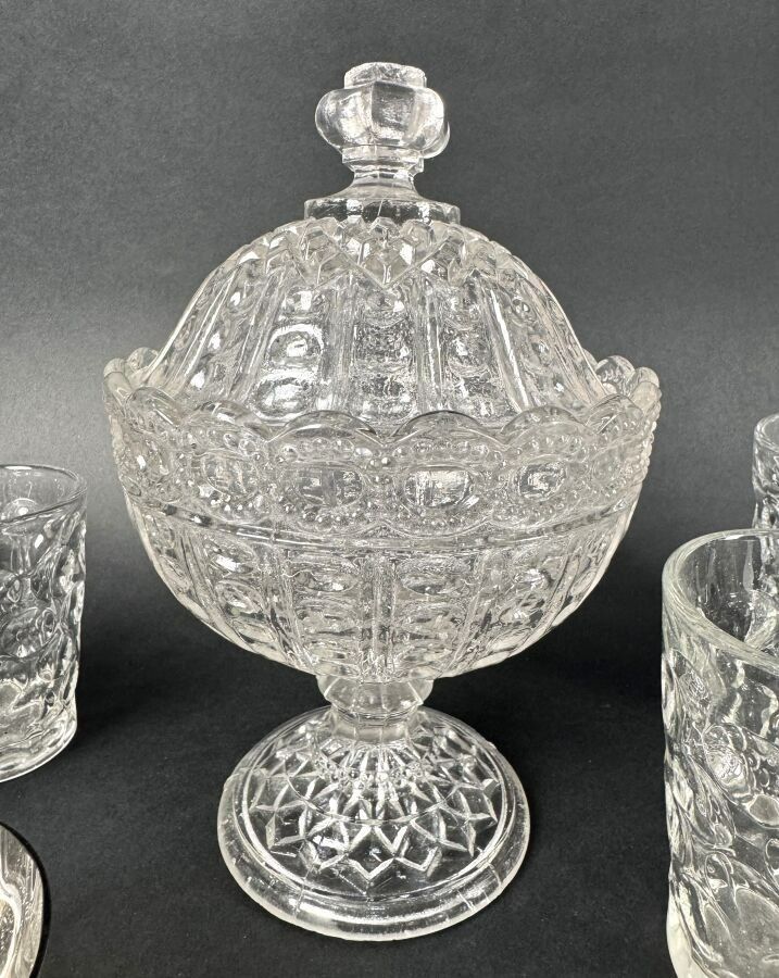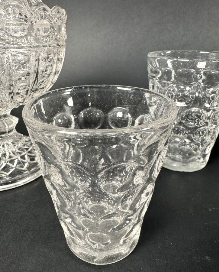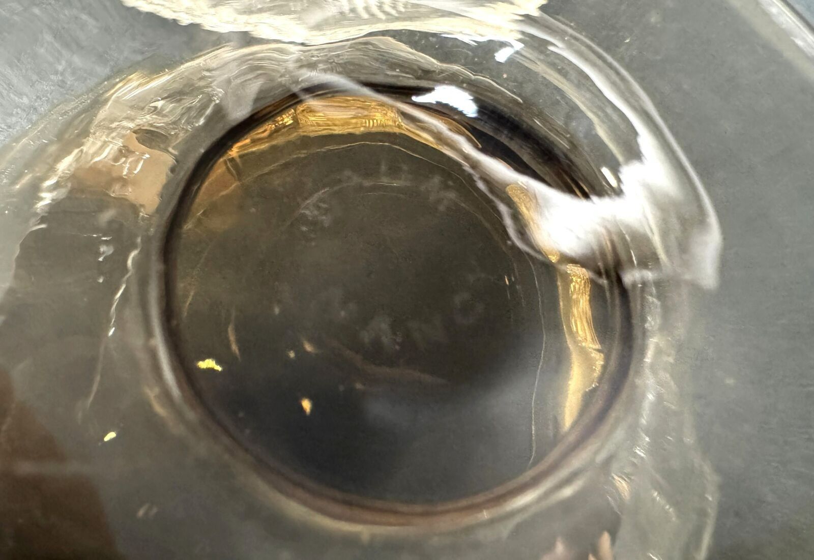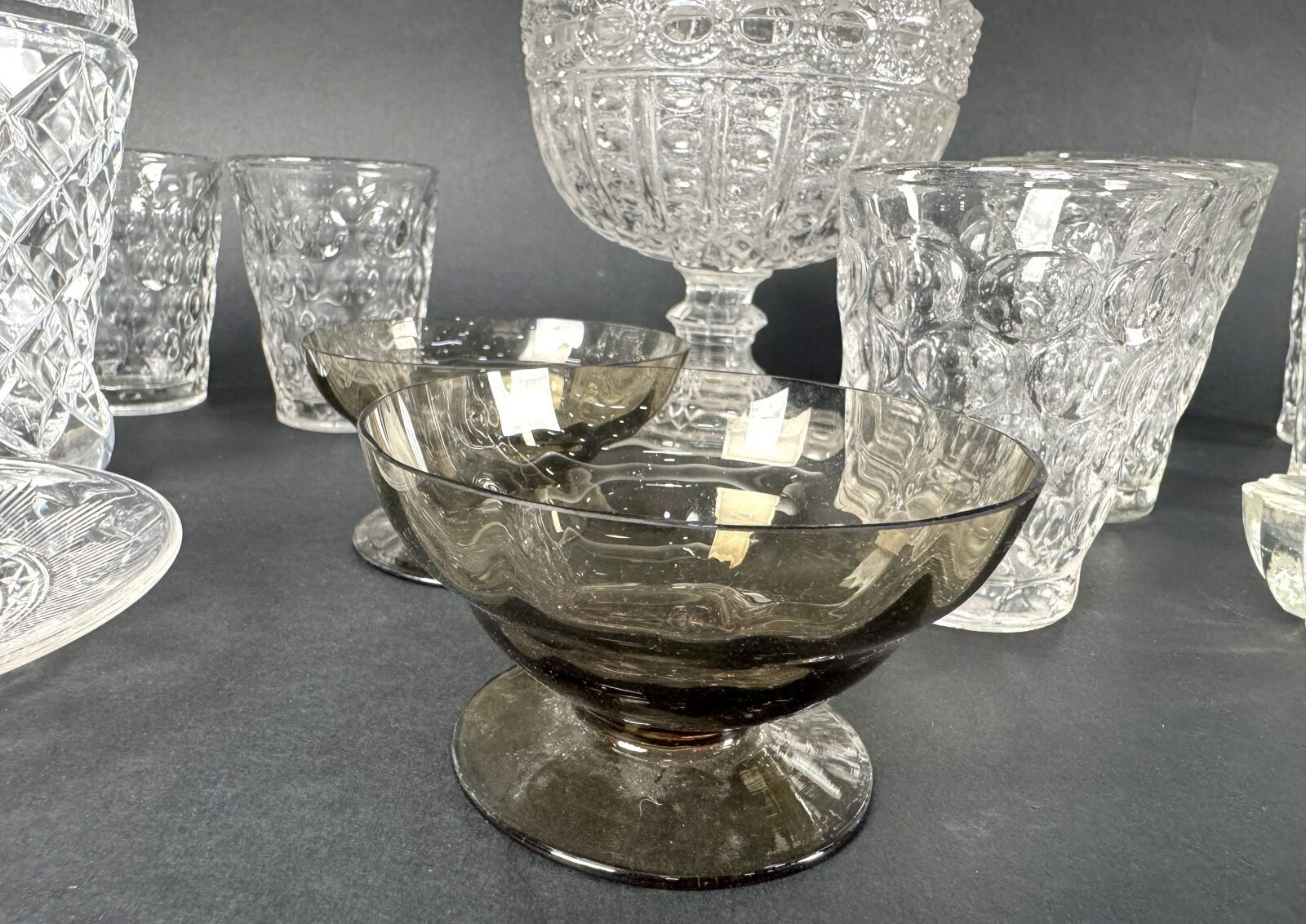 A lot composed of a crystal absinthe glass with radiant decoration, two DAUM smoked glass dishes, a moulded crystal ice bucket, 9 crystal glasses with pastille decoration of different sizes (small chips), 2 moulded glass salad bowls (small chips), a glass drageur (small chip).