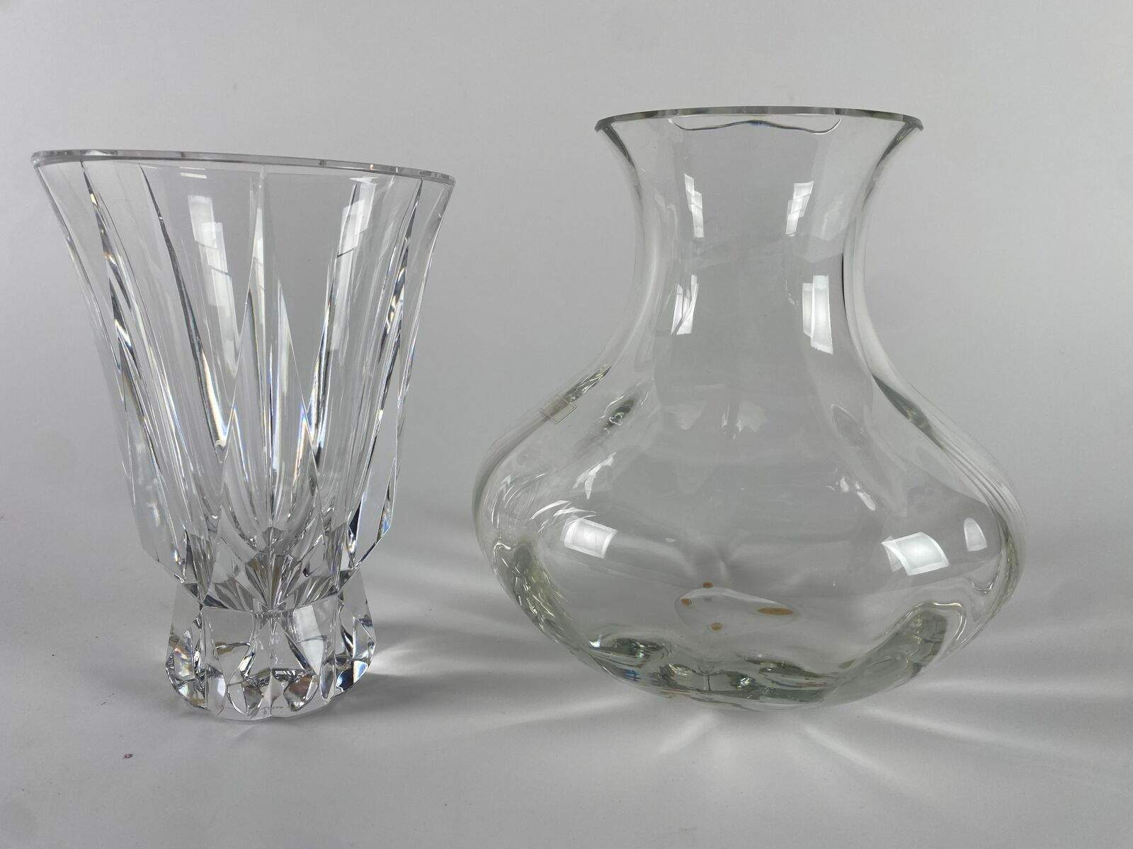 SAINT-LOUIS. Two crystal vases, TOURAINE model (height 21 cm) and the other in cut crystal (chipped neck - height 18 cm).