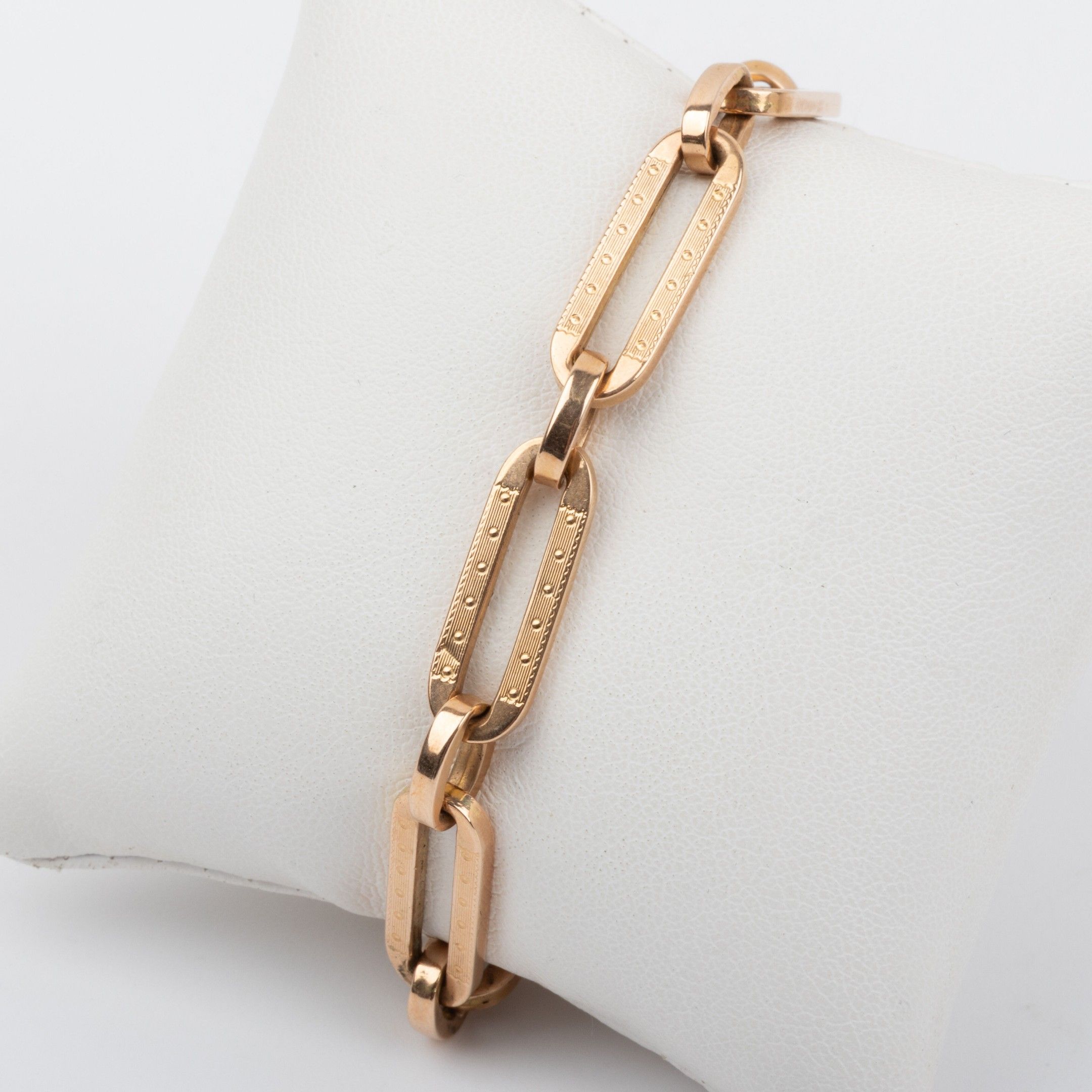 18K gold bracelet, engraved fancy stitch
