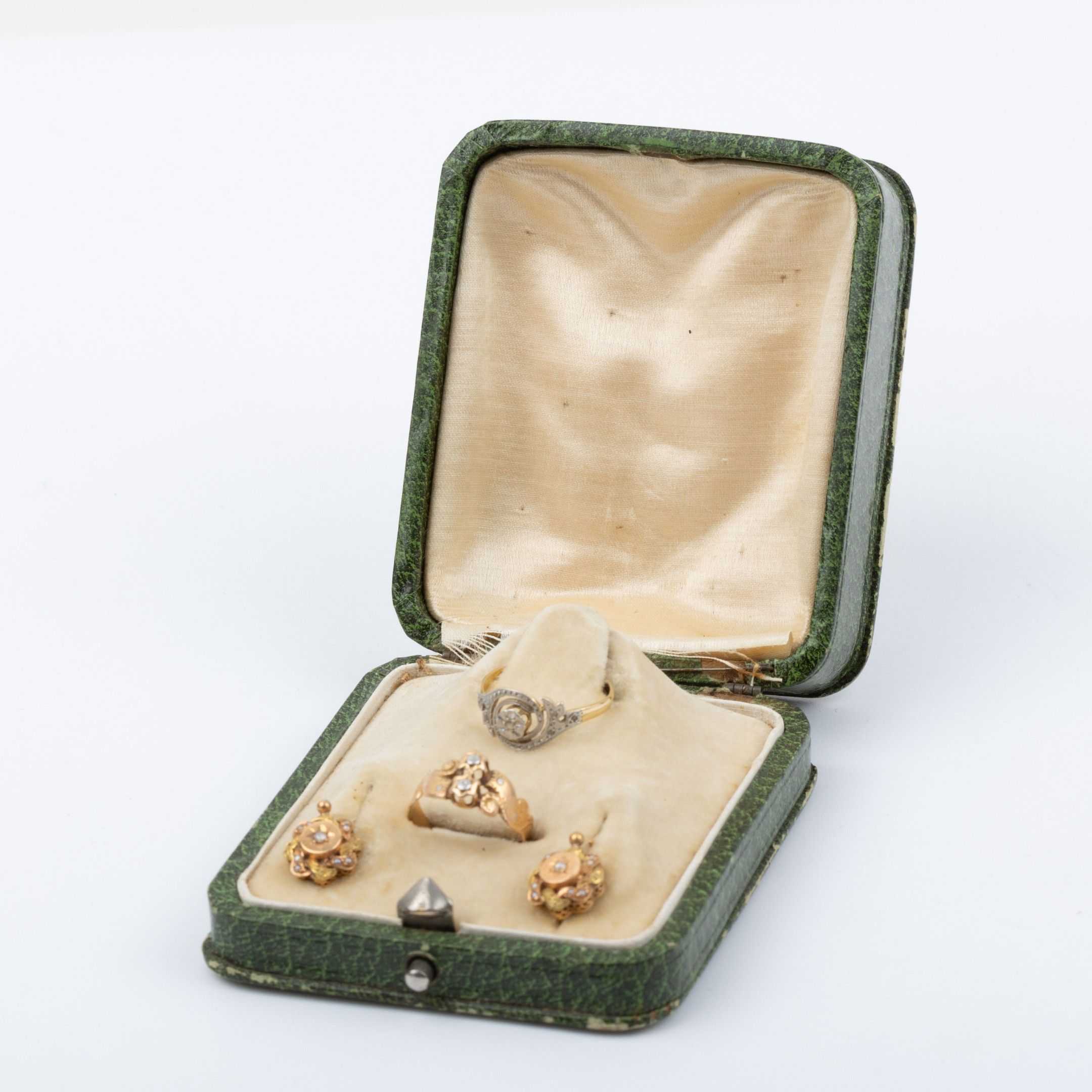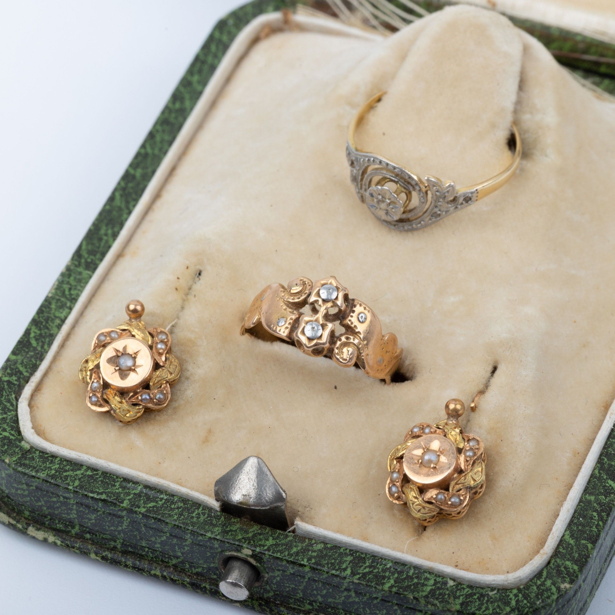 ***Ring and two earrings in 18K gold with cultured half pearls.